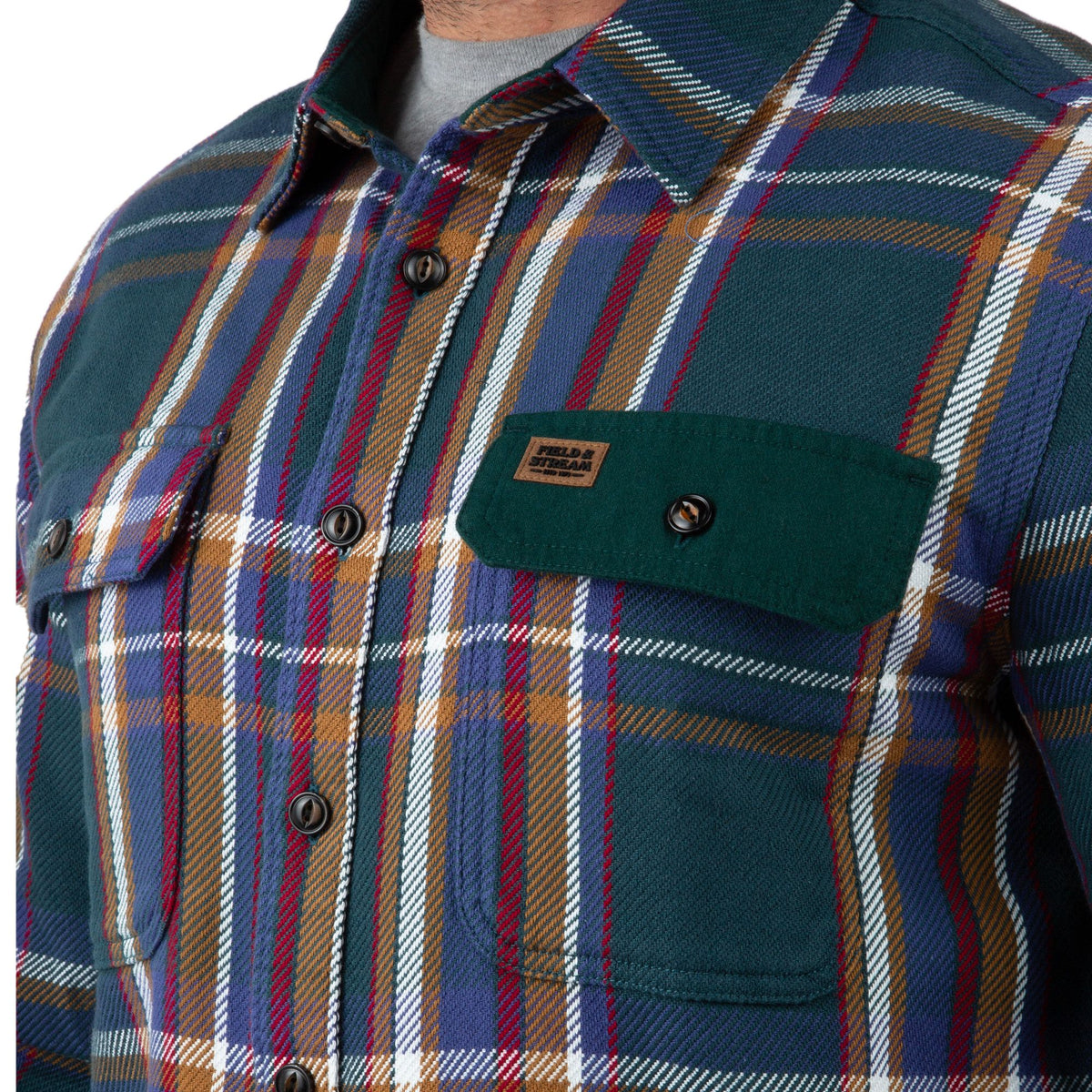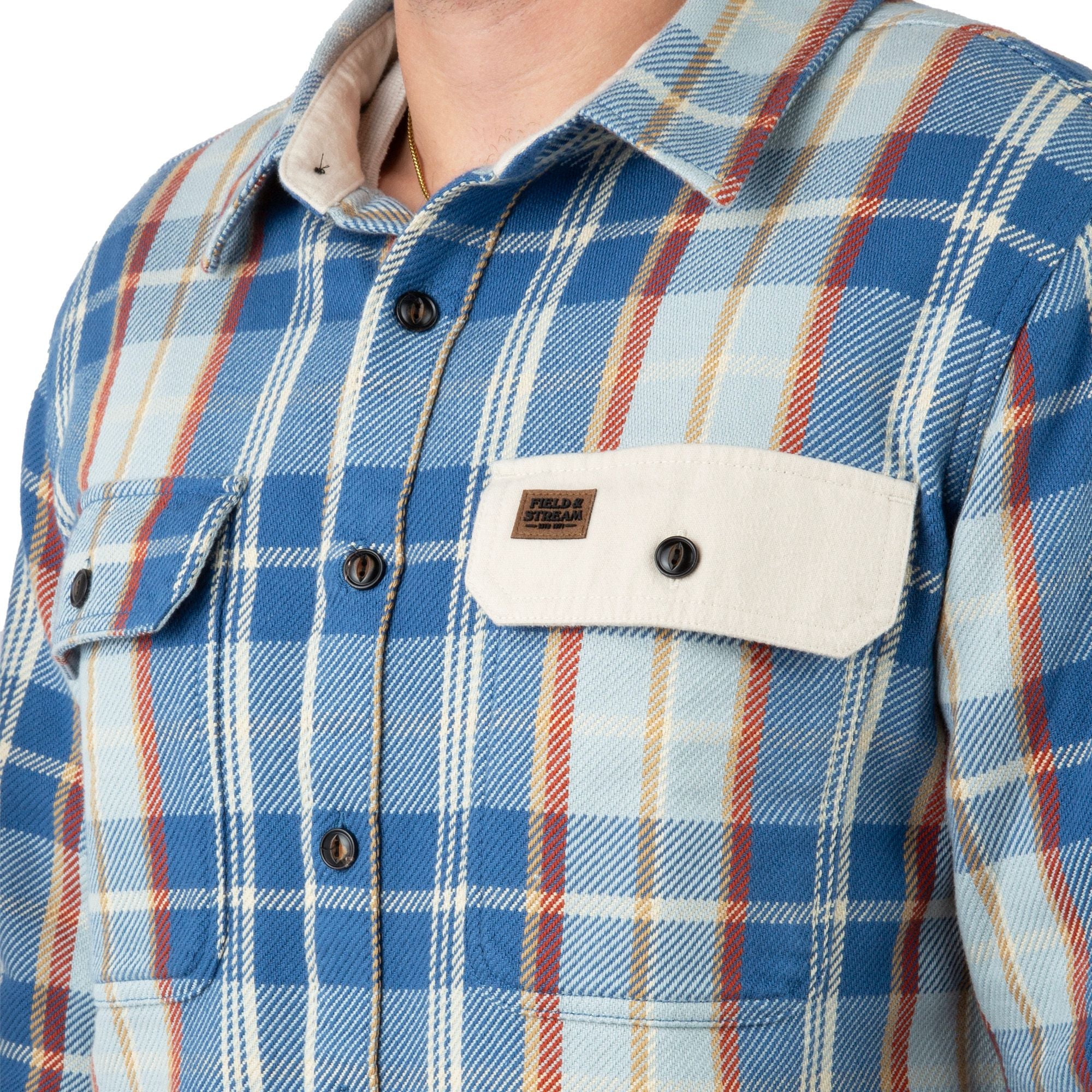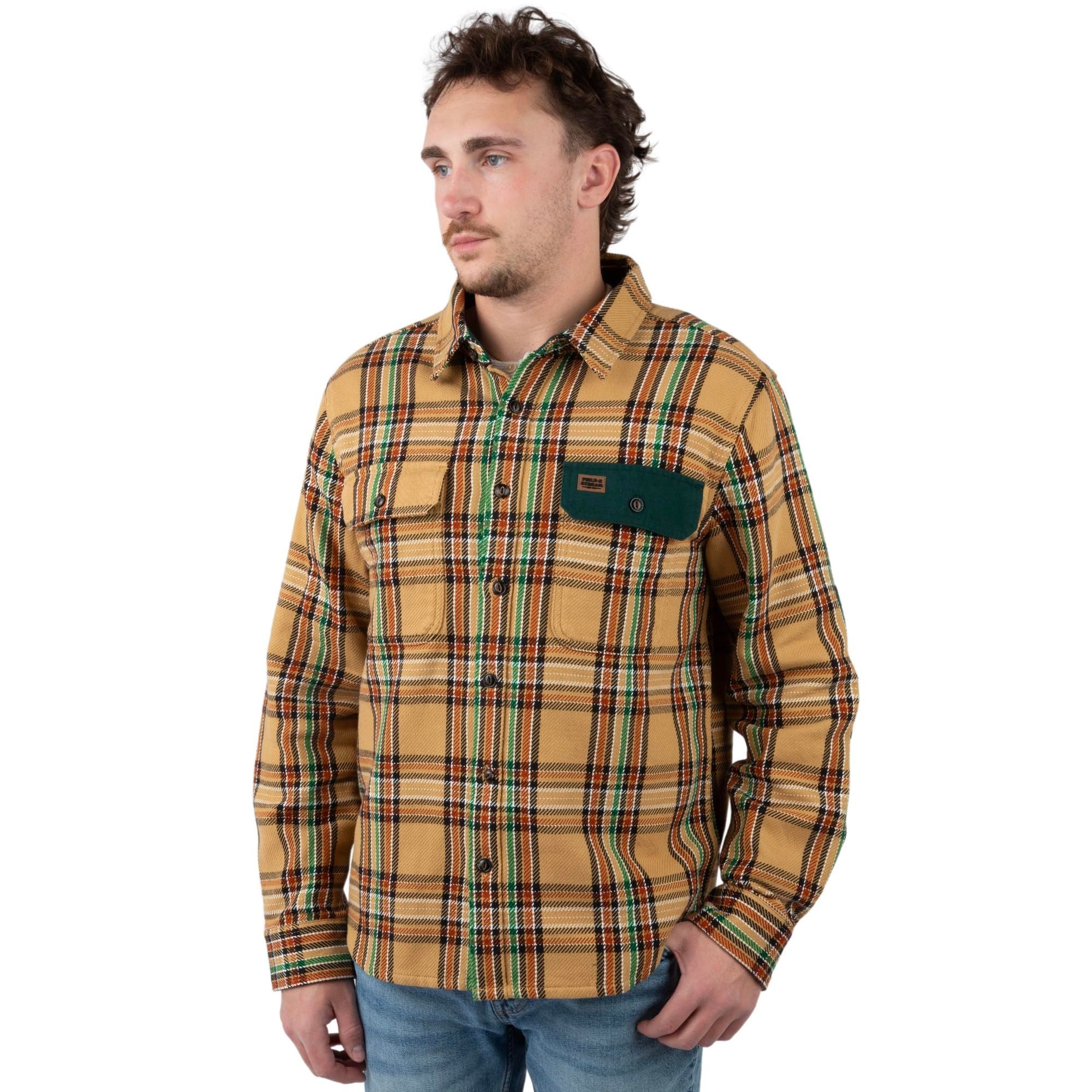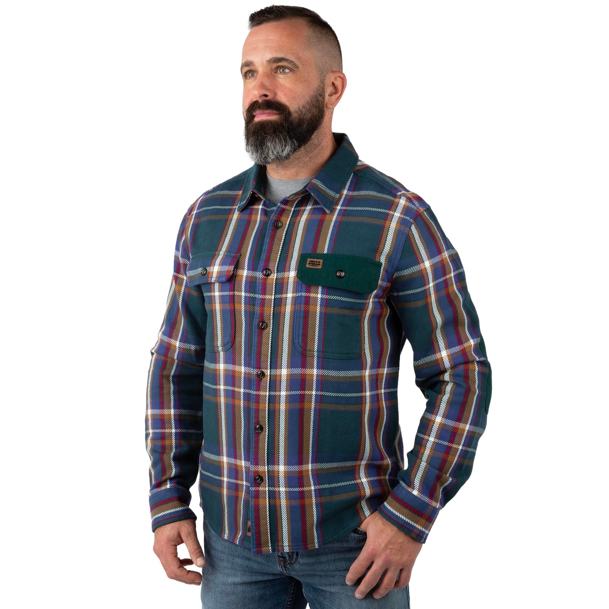 Built for serious warmth when temperatures drop, the Field & Stream Men’s Hardwood Heavyweight Flannel Shirt delivers brawny comfort in a classic outdoor staple. Made from thick, all-cotton flannel, it provides dependable insulation while remaining comfortable for all-day wear. The true-to-size, relaxed fit works well layered over a tee or worn on its own, making it a versatile choice from cold mornings in the field to everyday use. Rugged contrast trim at the collar, pockets, and elbows adds durability and a refined heritage look, while dual flap chest pockets, a curved hem, and adjustable cuffs round out its practical design. Backed by 150 years of Field & Stream craftsmanship, this flannel is built to handle cold conditions with confidence.