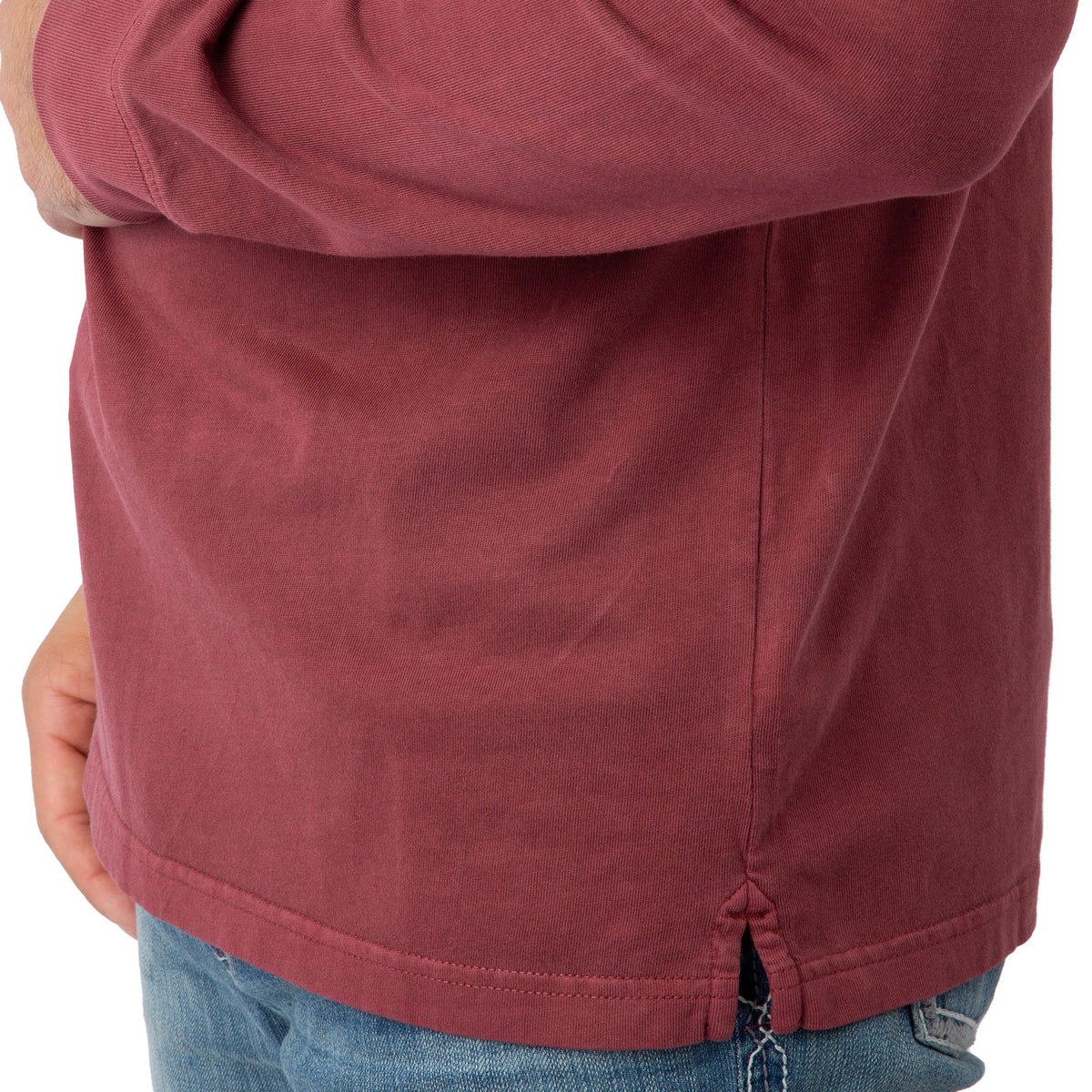 - Side-slit hem supports easy movement and layering