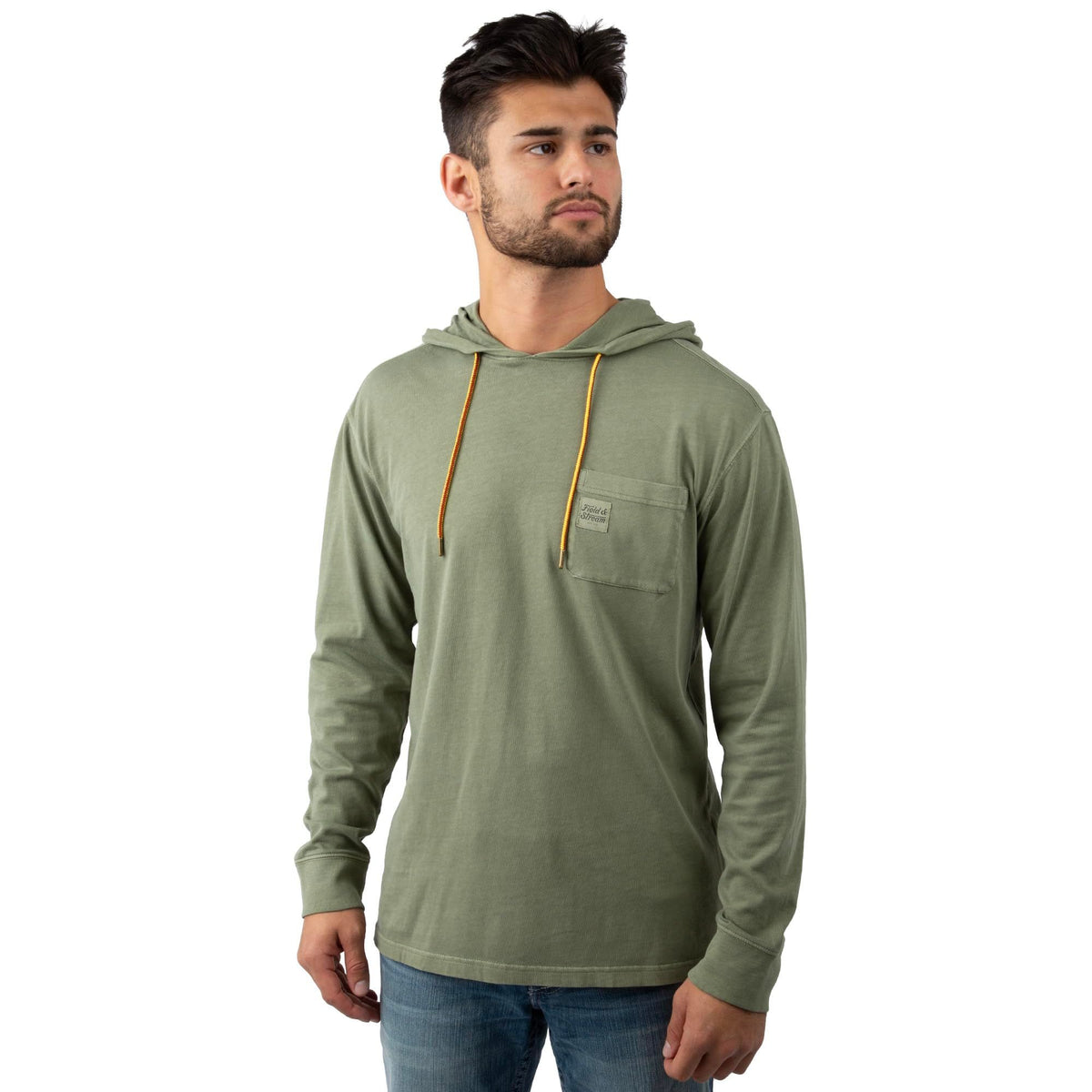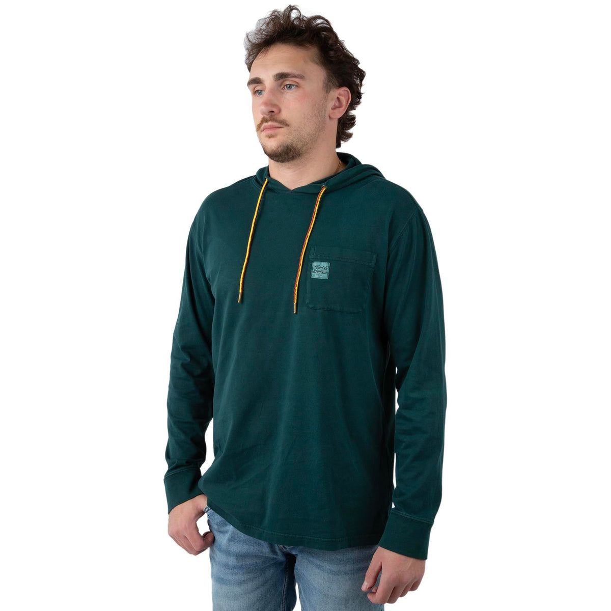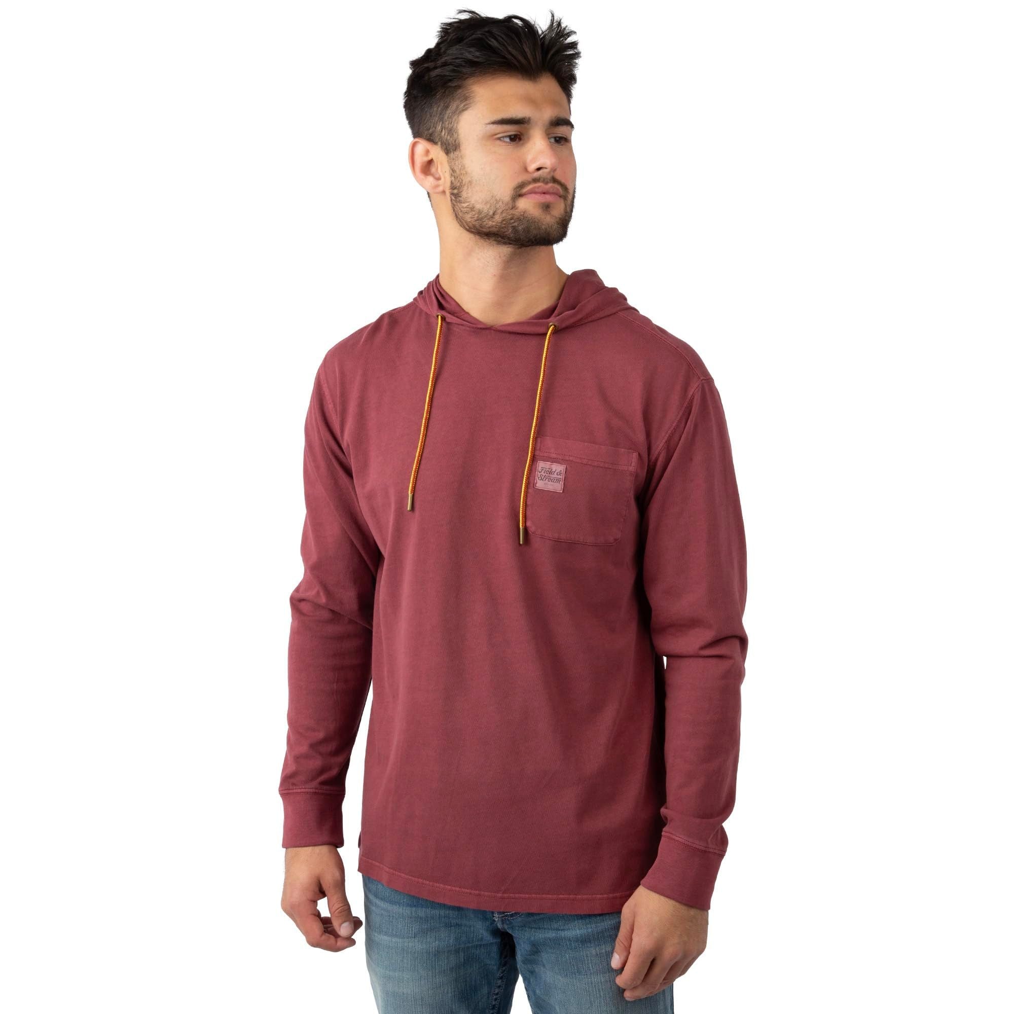 Designed for everyday comfort with a familiar, broken-in feel, the Field & Stream Men’s Flush Out Long Sleeve Hoodie is an easy layer built for relaxed wear on or off the trail. Made from garment-washed 100 percent cotton, the fabric feels soft from the first wear and continues to get better over time. A true-to-size, relaxed fit makes it comfortable for all-day use and easy to layer as temperatures change. Finished with a classic chest pocket, side-slit hem for natural movement, and a custom hood cord, this hoodie balances heritage styling with modern comfort. Subtle details like a tag-free neck label and Field & Stream branding reflect 150 years of craftsmanship rooted in dependable outdoor design.