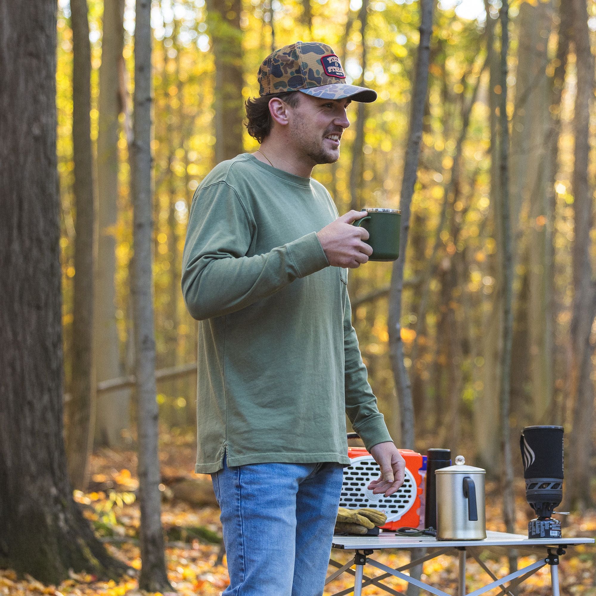 - Classic chest pocket adds utility with subtle Field & Stream branding