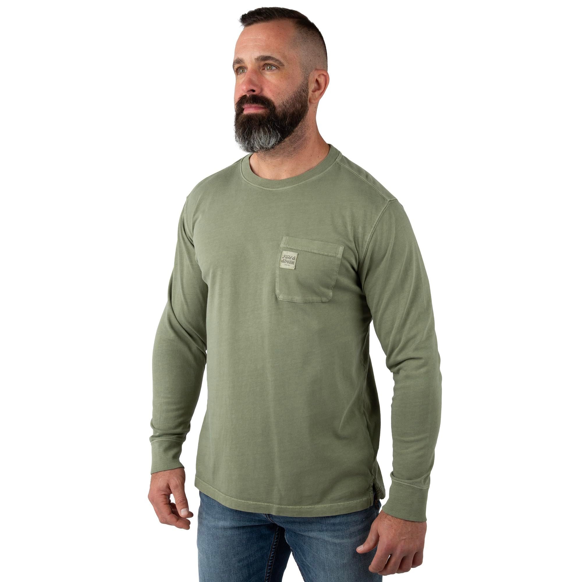 Built for everyday comfort with authentic outdoor roots, the Field & Stream Men’s Flush Out Long Sleeve Pocket Tee is a simple, dependable layer you can reach for year-round. Made from soft, garment-washed 100 percent cotton, it delivers a naturally broken-in feel from the first wear. The relaxed, true-to-everyday fit stays comfortable in any setting, with a tag-free neck label to keep things clean and irritation-free. Finished with a classic chest pocket featuring a Field & Stream label and a side-slit hem for easy movement, this long sleeve tee reflects 150 years of heritage and practical outdoor design.