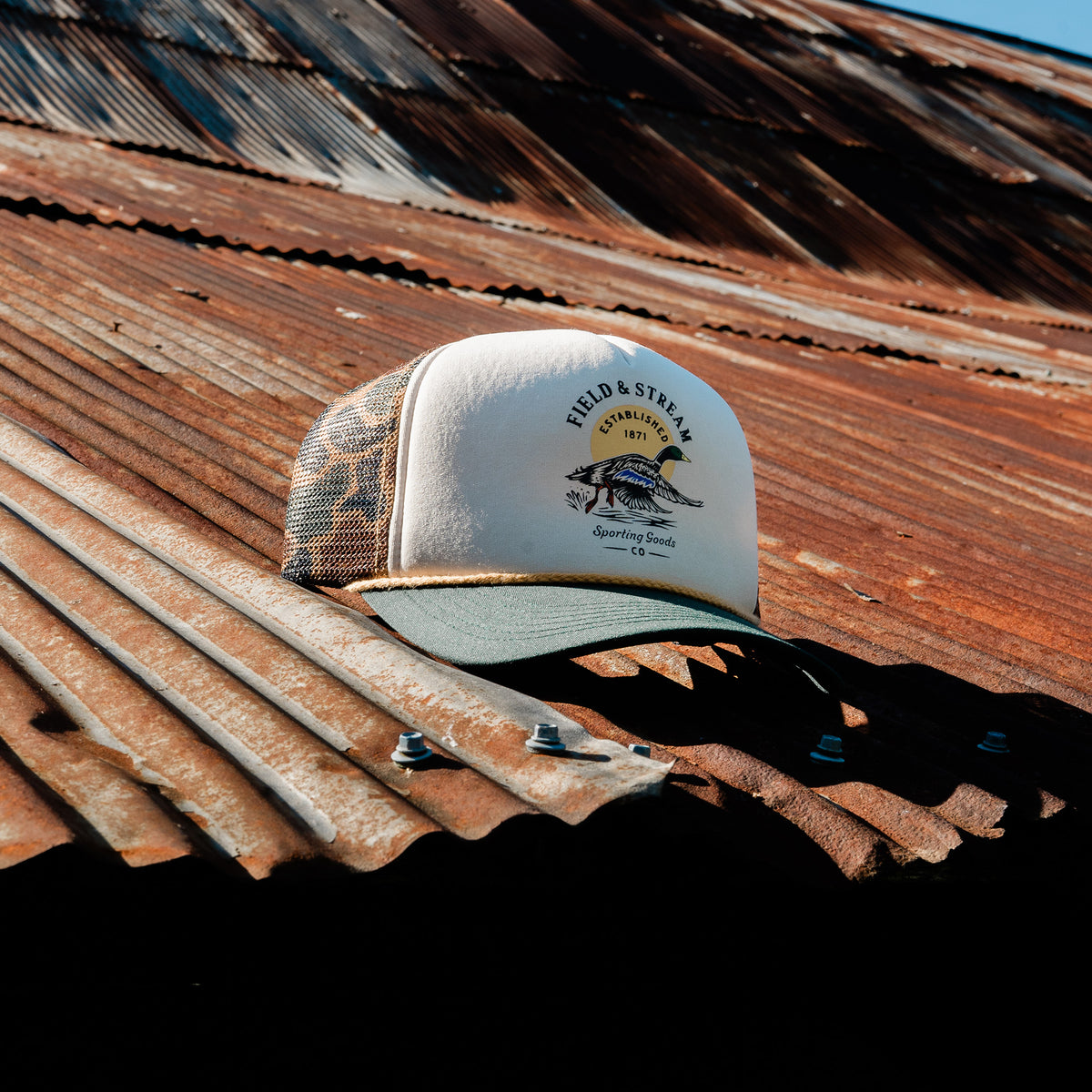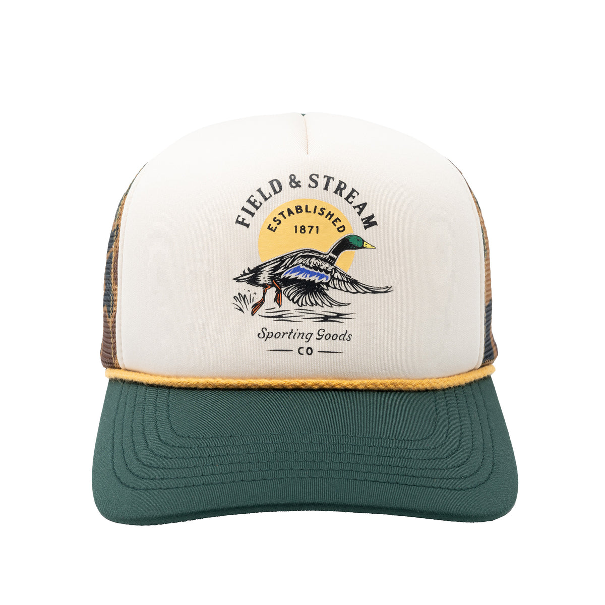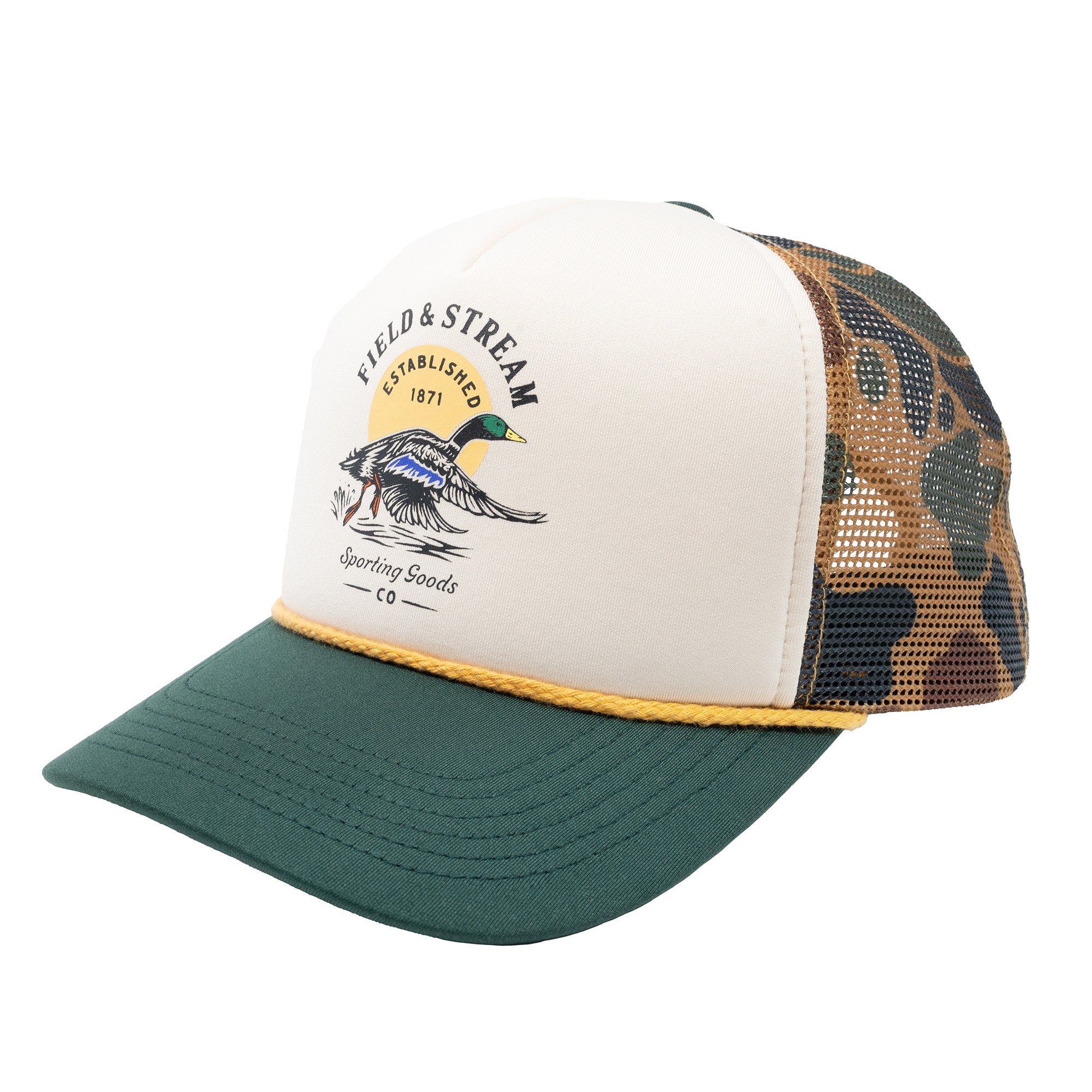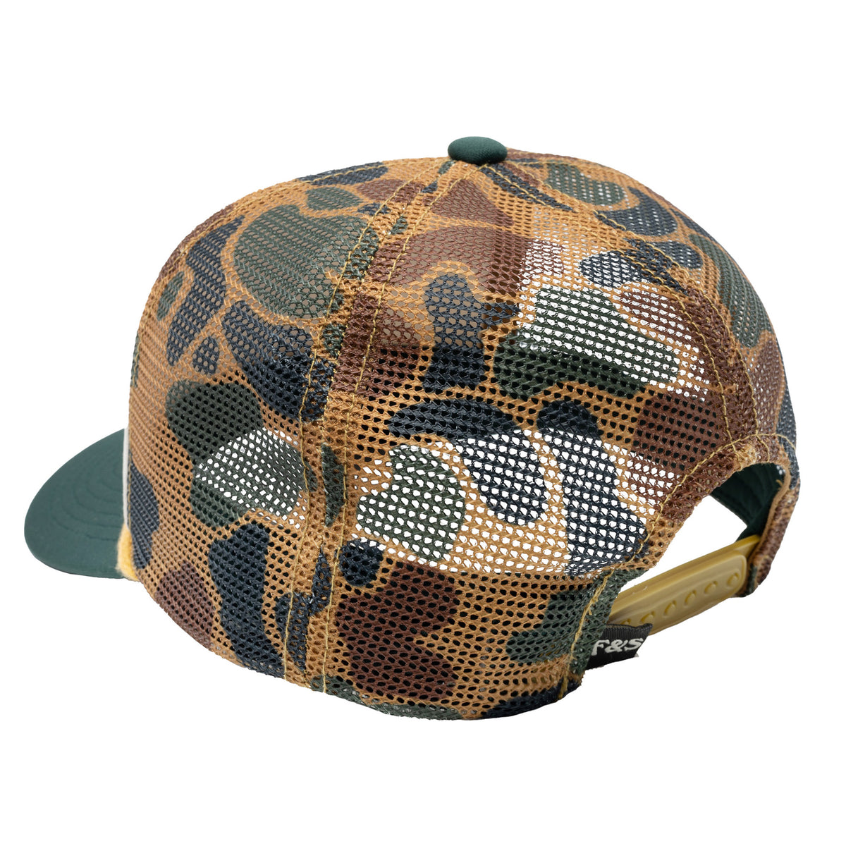 “Unleash your inner duck hunter” with this vintage illustration camo duck hunter mesh hat. Designed in partnership with Sporting Good Co. specifically for outdoor enthusiasts and dedicated duck hunter. Giving a nod to our time-honored & deep-rooted passion for the sport and the traditions that are passed down through the generations.