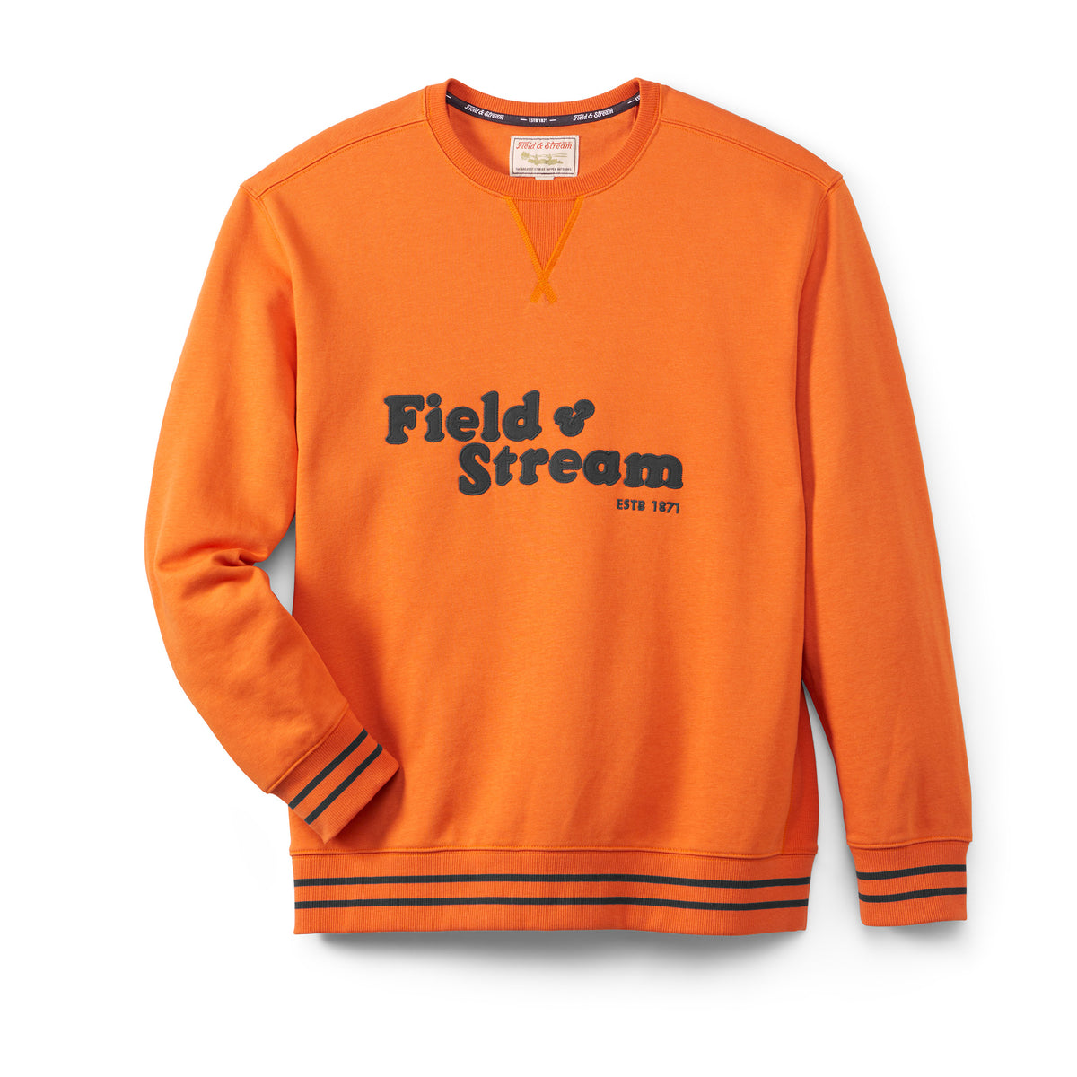 Ease and warmth are the pinnacle features of this lightweight French terry graphic crewneck pullover. Can’t-miss features are its handsome front V detail, front-forward shoulder stitching for comfort, university custom cuffs and hem, and custom old school Field & Stream applique. The French terry fabric gives you flexibility and comfort throughout the day but is super durable and makes a great layering piece for transitional weather.