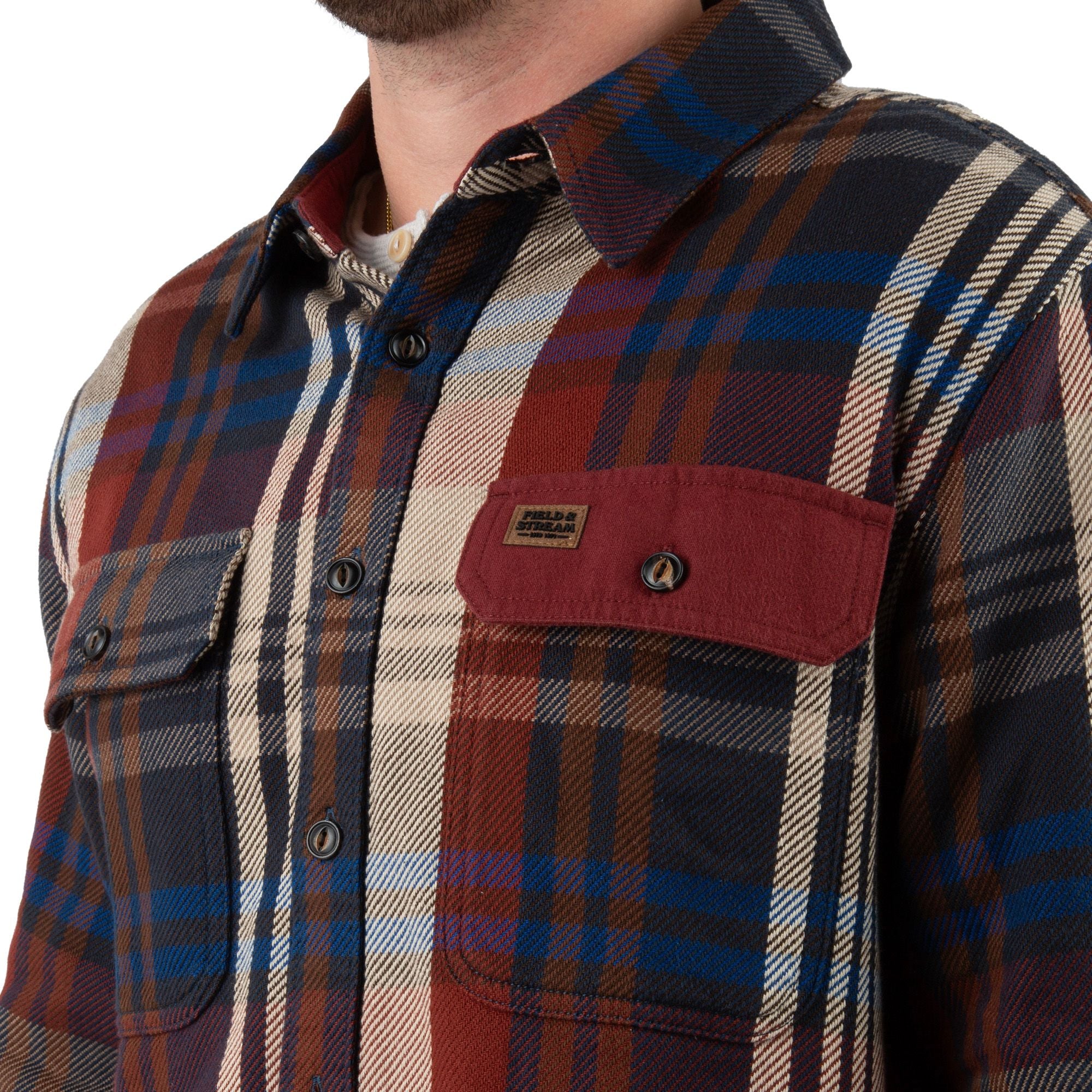 Built for serious warmth when temperatures drop, the Field & Stream Men’s Hardwood Heavyweight Flannel Shirt delivers brawny comfort in a classic outdoor staple. Made from thick, all-cotton flannel, it provides dependable insulation while remaining comfortable for all-day wear. The true-to-size, relaxed fit works well layered over a tee or worn on its own, making it a versatile choice from cold mornings in the field to everyday use. Rugged contrast trim at the collar, pockets, and elbows adds durability and a refined heritage look, while dual flap chest pockets, a curved hem, and adjustable cuffs round out its practical design. Backed by 150 years of Field & Stream craftsmanship, this flannel is built to handle cold conditions with confidence.