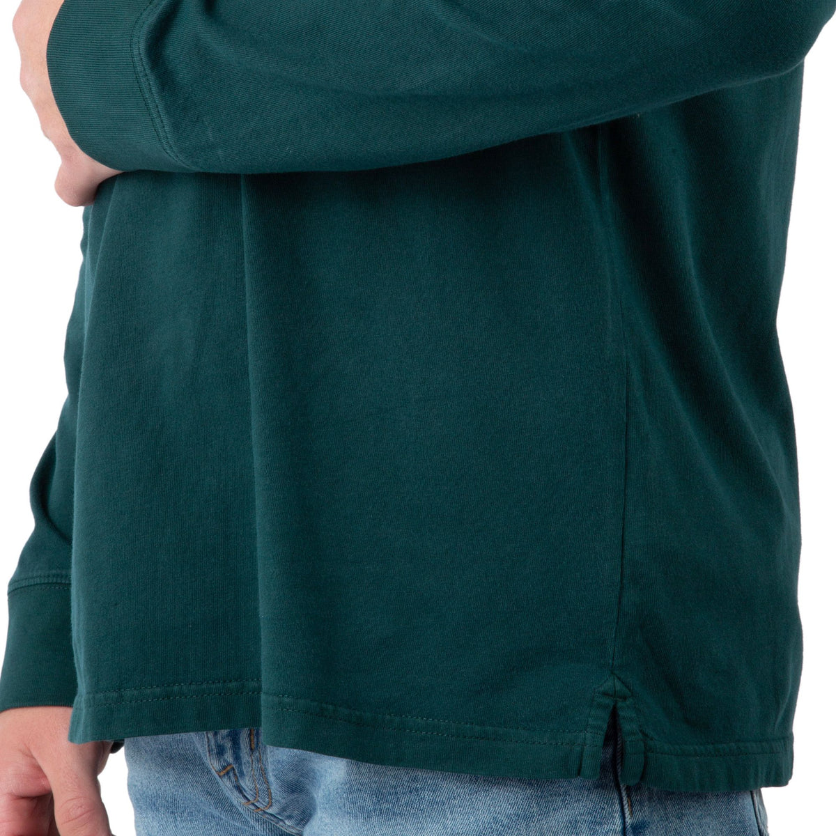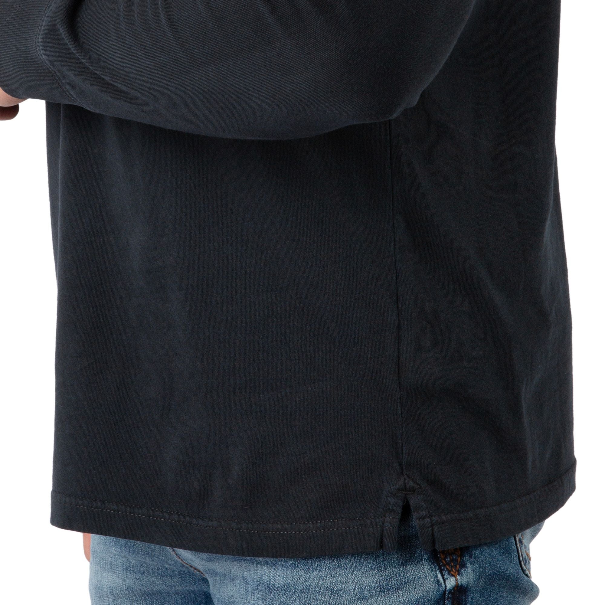 - Side-slit hem supports easy movement and layering