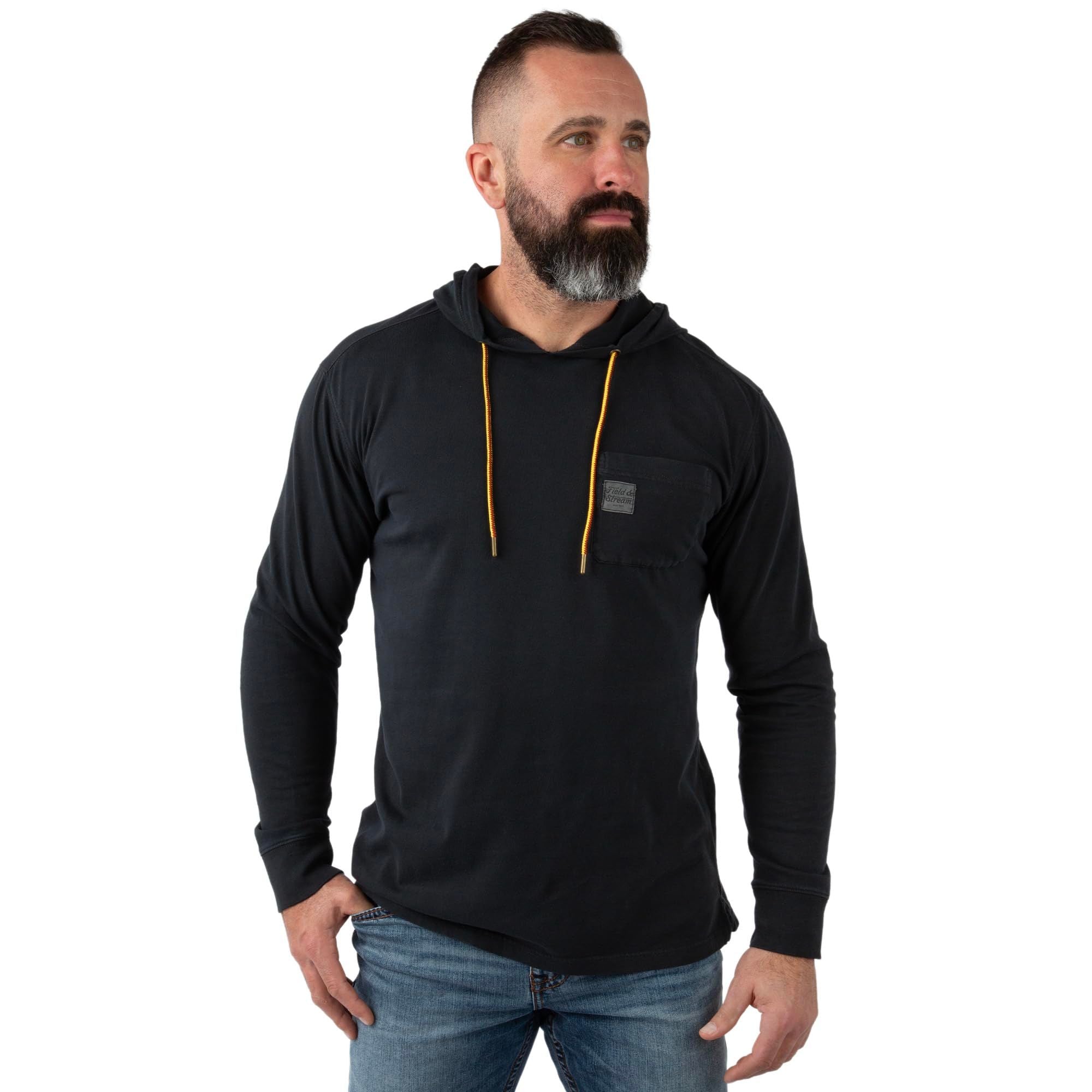 Designed for everyday comfort with a familiar, broken-in feel, the Field & Stream Men’s Flush Out Long Sleeve Hoodie is an easy layer built for relaxed wear on or off the trail. Made from garment-washed 100 percent cotton, the fabric feels soft from the first wear and continues to get better over time. A true-to-size, relaxed fit makes it comfortable for all-day use and easy to layer as temperatures change. Finished with a classic chest pocket, side-slit hem for natural movement, and a custom hood cord, this hoodie balances heritage styling with modern comfort. Subtle details like a tag-free neck label and Field & Stream branding reflect 150 years of craftsmanship rooted in dependable outdoor design.