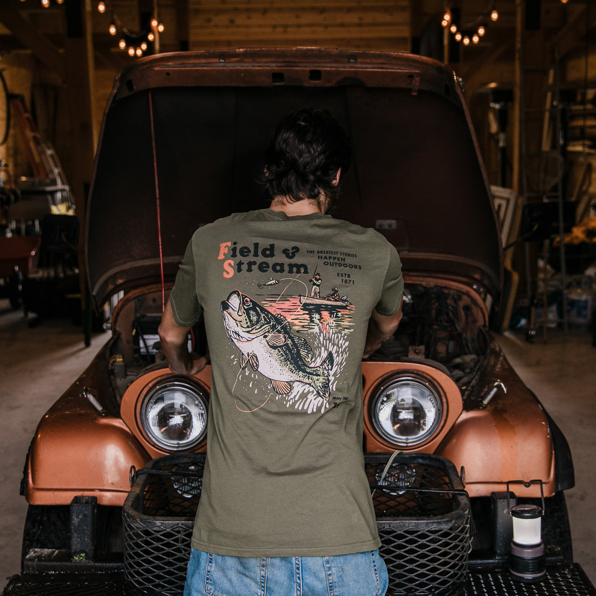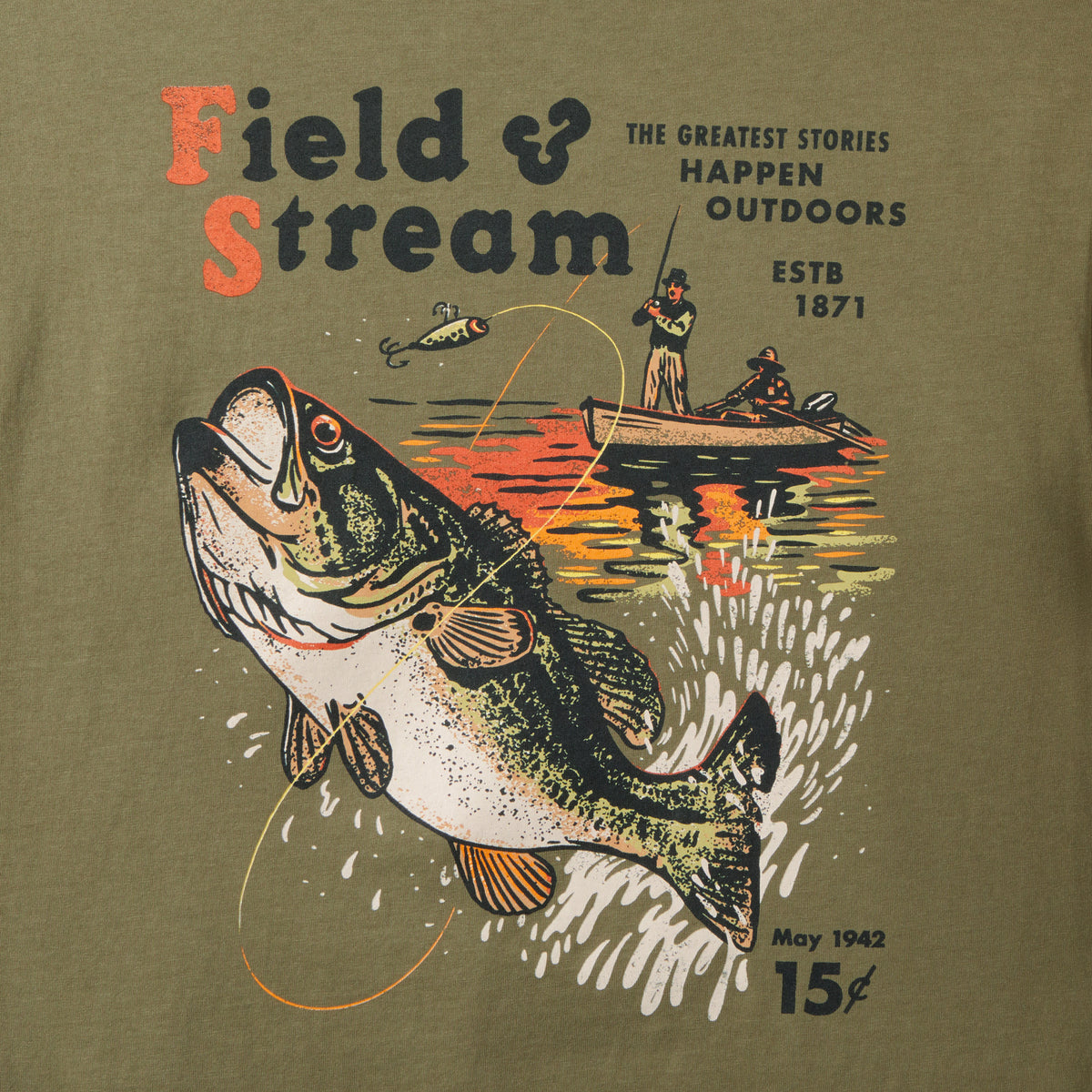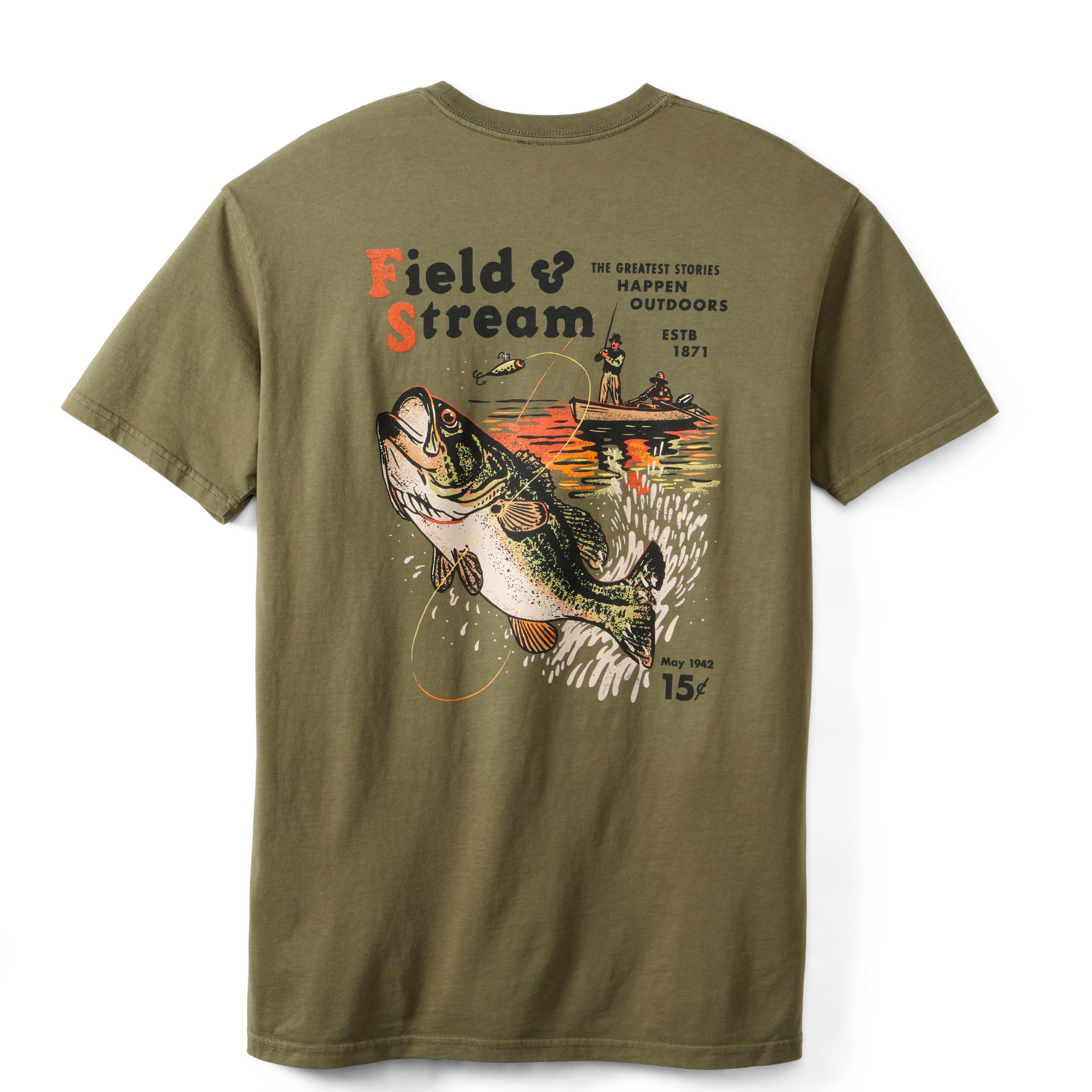 The ones that got away tend to stick with you the most. Our Field & Stream Throwing the Hook Short Sleeve Tee Shirt references original cover art from our May 1942 issue, and honors those elusive bass that keep us coming back for more.