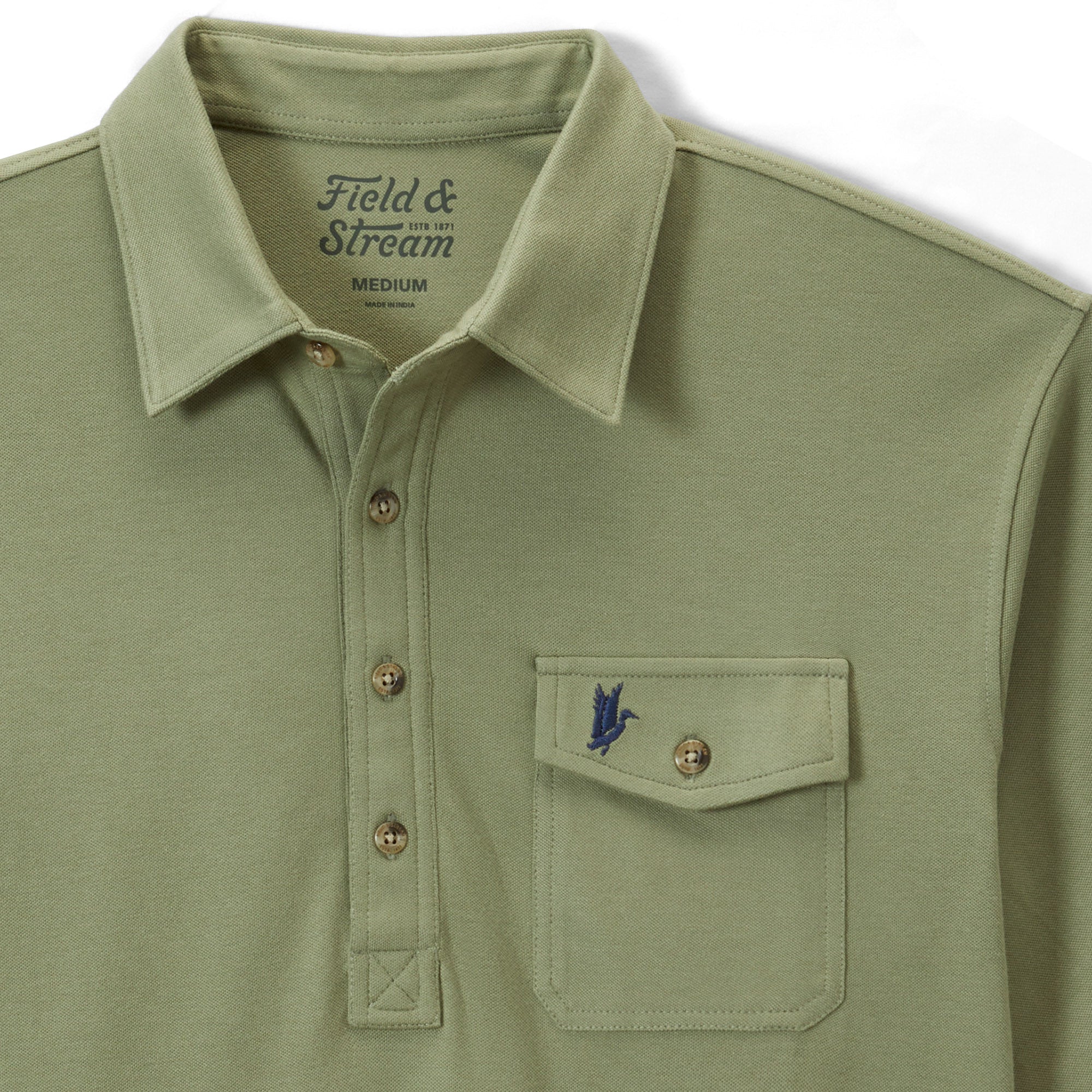 An easy go-to for everyday and for any adventure, our short-sleeve Polo Shirt has a vintage style four-button placket, single buttoned-flap chest pocket, front-forward seam at the shoulder and small side vent for movability. Pique fabric gives it added durability and breathability for effortless transitions from work to play.
