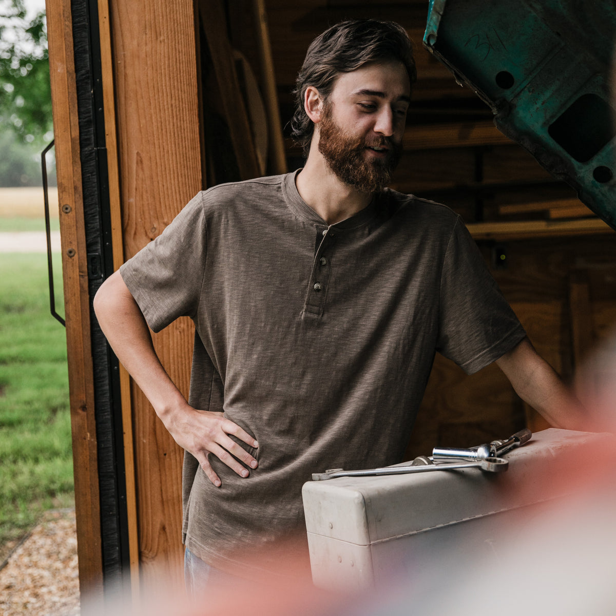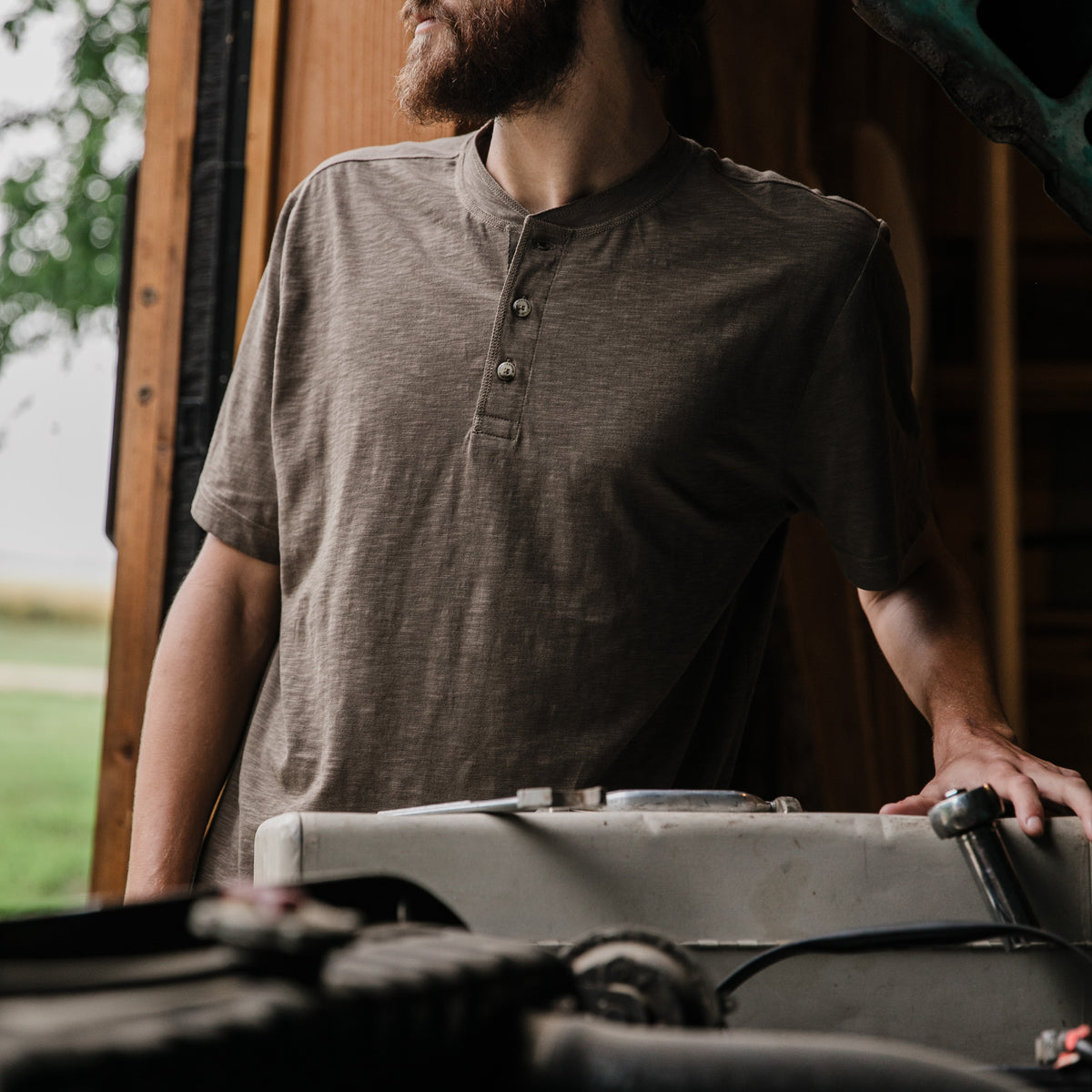 - Classic Outdoor Style – This short-sleeve henley shirt blends rugged comfort with timeless outdoor-inspired design, perfect for hikes, campfires, or casual days out.