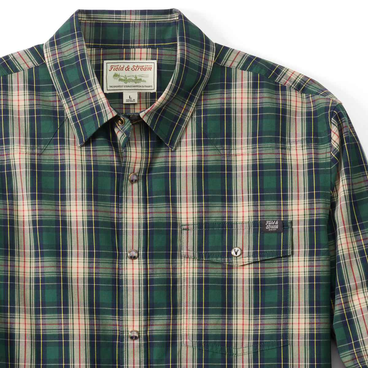 With a flattering western yoke, our woven long sleeve button-down shirt in unique vintage patterns has the spirit of the outdoors and will take you to town looking sharp. Vintage single pocket with buttoned flap is branded with our Field & Stream signature and has a handy pencil/sunglass slot, buttoned cuffs. A drop tail hem and flying V yoke are added for mobility and good looks.