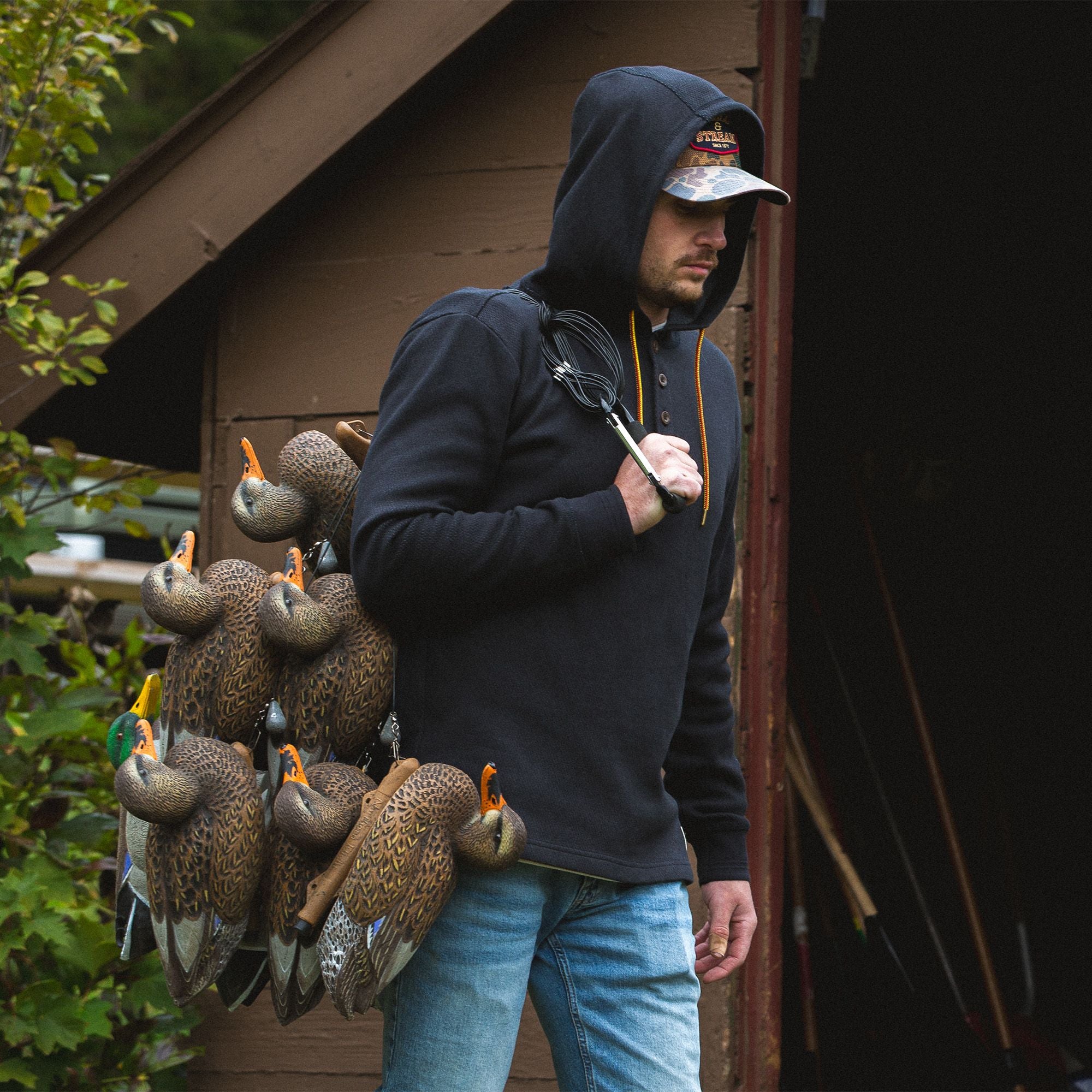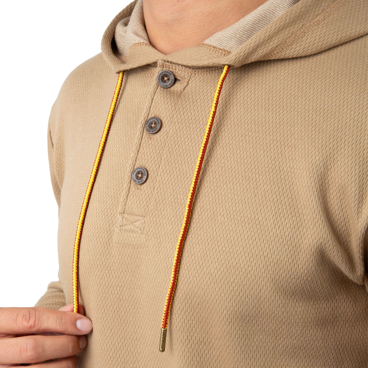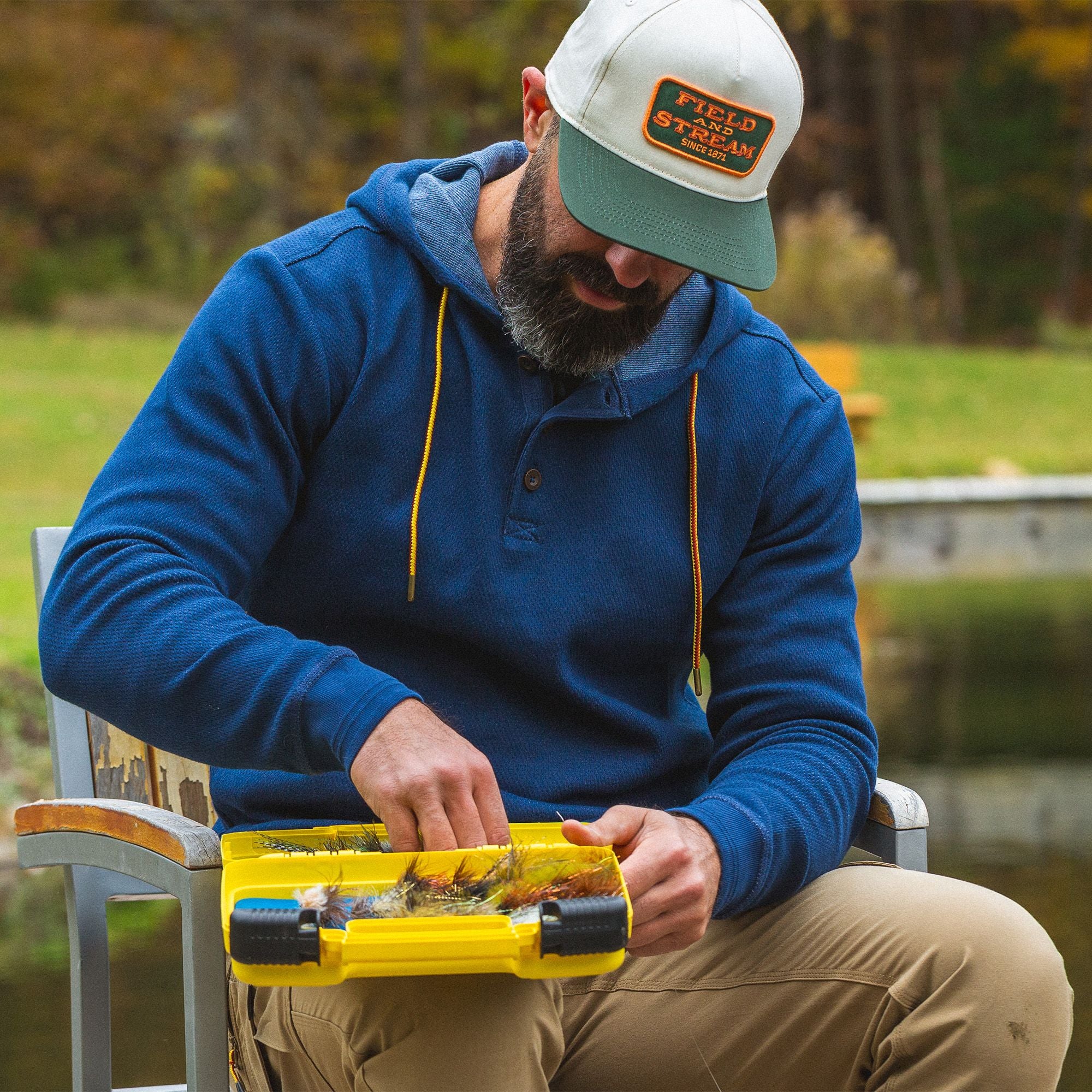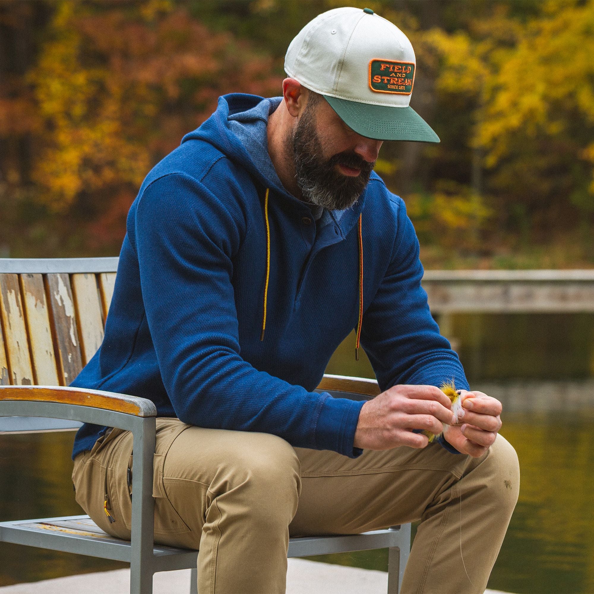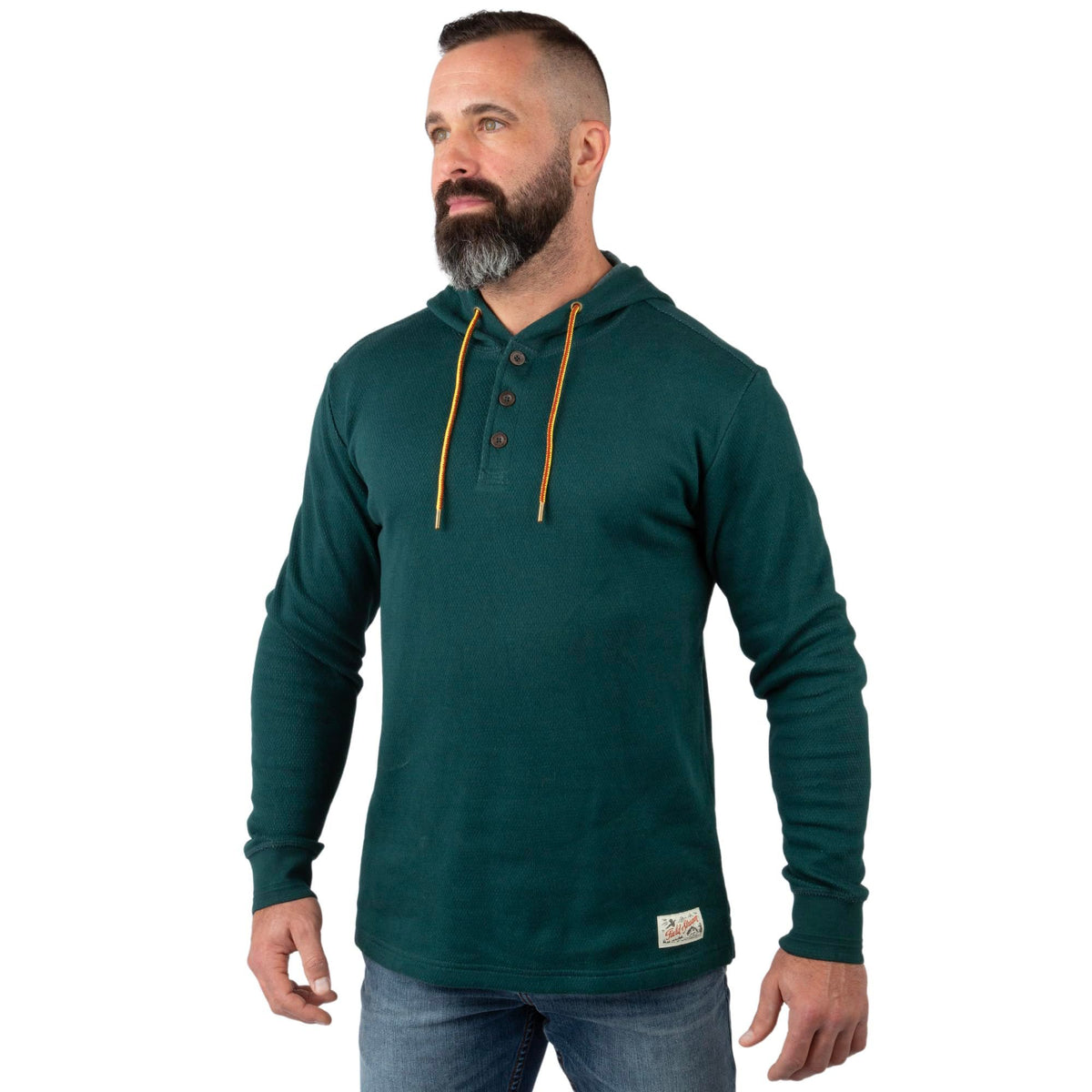 Built for reliable warmth when temperatures drop, the Field & Stream Men’s Double Reed Thermal Hoodie combines classic thermal comfort with added coverage for everyday outdoor wear. The double-layer construction features a birdseye thermal exterior paired with a soft ribbed interior that helps retain heat while staying comfortable against the skin. Made from a durable cotton-poly blend, it offers lasting softness and performance through repeated wear. A built-in three-piece hood with a custom drawcord adds extra warmth and a casual outdoor look, while the three-button placket, ribbed cuffs, and split hem support easy layering and natural movement. Rooted in 150 years of Field & Stream heritage, this hoodie is designed as a dependable cold-weather essential.