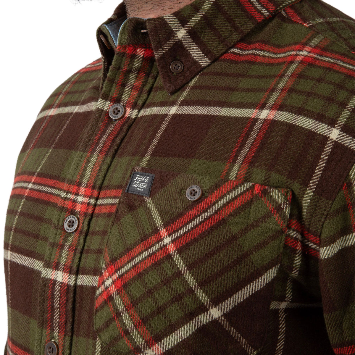 Built for dependable comfort from the first cool morning to the last light of the season, the Field & Stream Men’s Opening Day Flannel Shirt delivers classic outdoor style with everyday versatility. Made from midweight 100 percent cotton flannel, it offers a soft feel with lasting warmth that works well layered or worn on its own. A true-to-size, relaxed fit keeps things comfortable through long days, while refined chambray trim at the collar and interior adds a subtle touch of craftsmanship. Finished with a button-down collar, single chest pocket, curved hem, and adjustable cuffs, this flannel reflects 150 years of Field & Stream heritage built for life beyond the field.