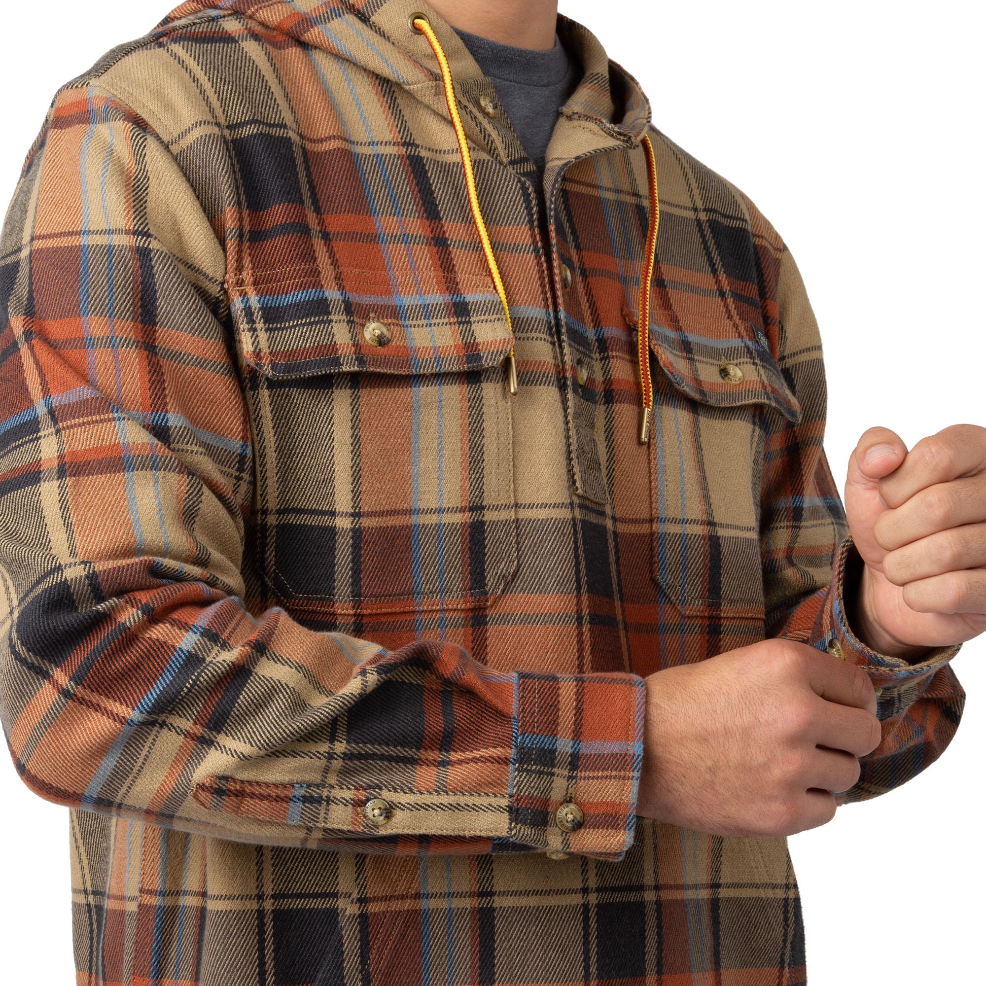 Blending the comfort of a hoodie with the classic look of flannel, the Field & Stream Men’s Raghorn Flannel Hoodie is built for easy wear in cool-weather conditions. A deep four-button placket makes it simple to pull on or off while keeping a traditional flannel feel, and the cotton-rich fabric with added stretch delivers lasting comfort and mobility throughout the day. The true-to-size, relaxed fit is finished with adjustable cuffs, a curved hem, and an adjustable hood cord for versatile wear. Thoughtful storage includes dual chest pockets and a front kangaroo pocket that adds warmth and everyday utility. Rooted in 150 years of Field & Stream heritage, this flannel hoodie is designed for dependable comfort and modern outdoor style.