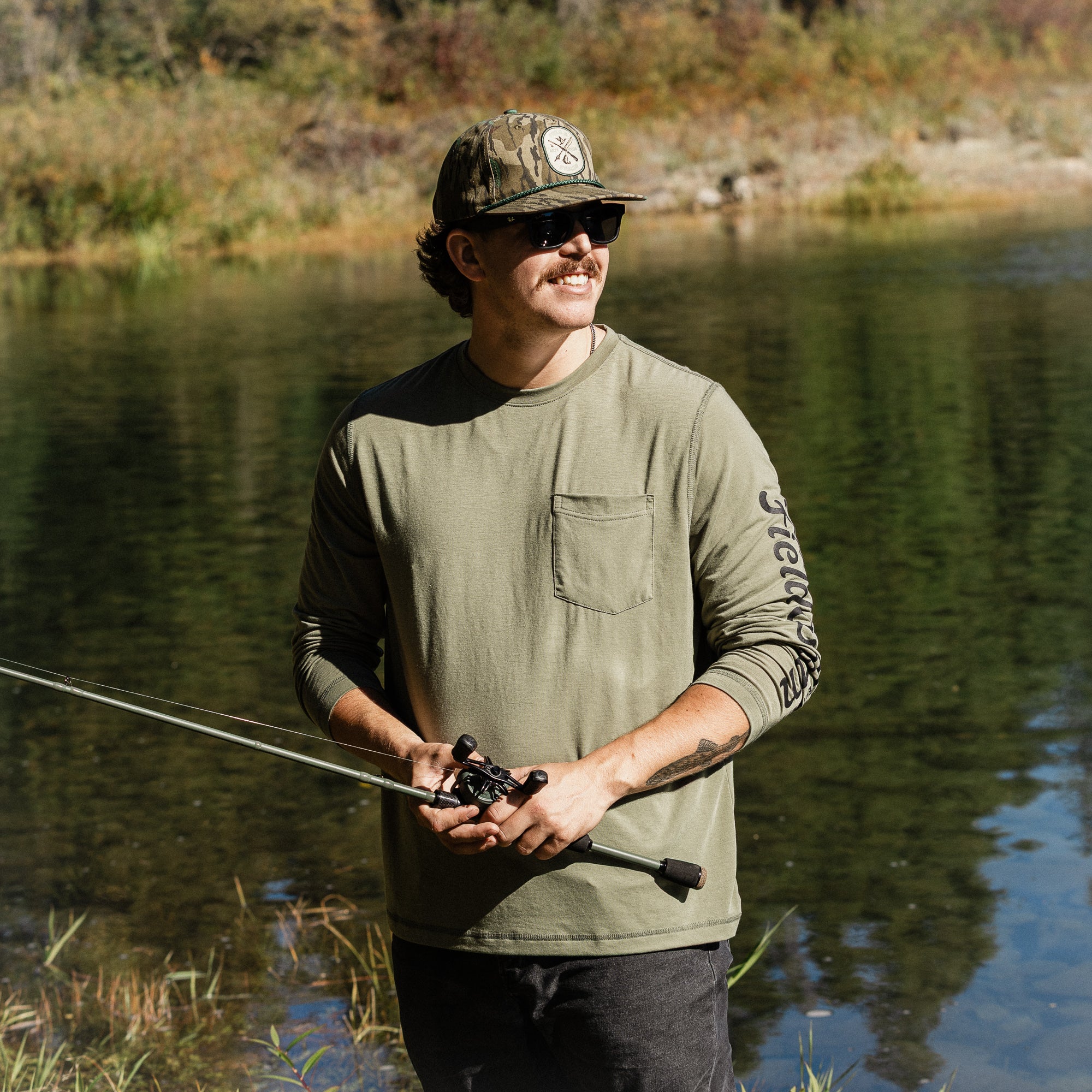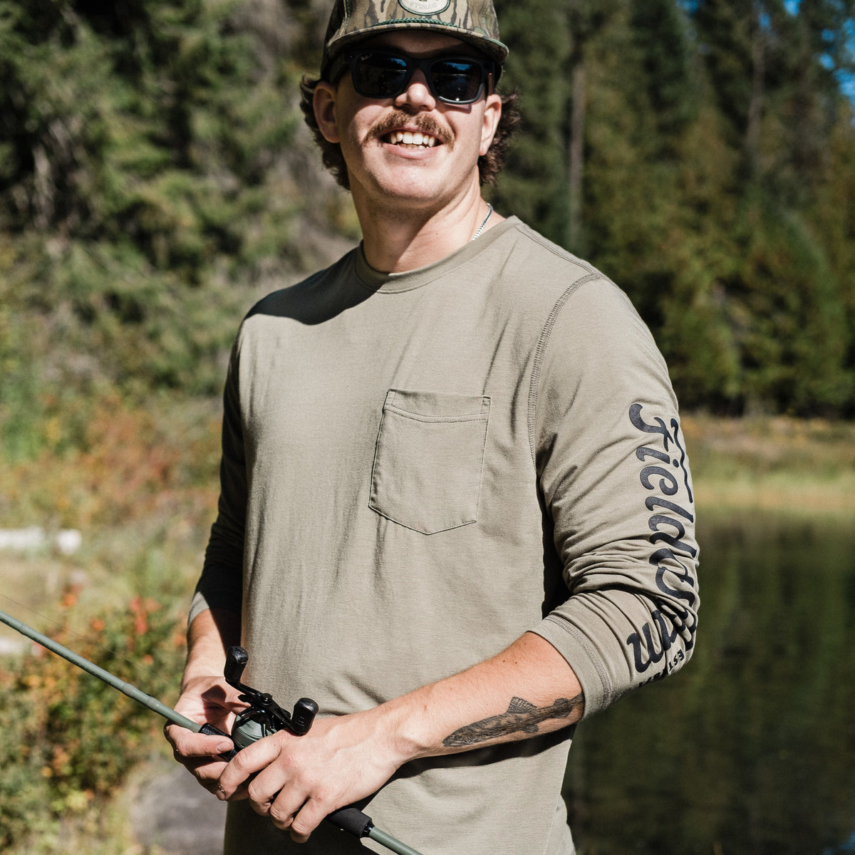 For long-sleeve comfort throughout the day, our Long-sleeve Performance Tee Shirt is always ready for go-time from fishing to hunting and everything in between. Makes a great layer under your hoodie or overshirt but looks great on its own with a left chest pocket and sublimated Field & Stream graphic down the left arm. Temperature regulating materials, reinforced stitching, forward-front seam for added comfort on your shoulders and a custom fit for ease of movement. UPF 50, temperature regulating materials with 4-way stretch, drirelease custom fabrication for added cooling and moisture wicking – keeping you dry, comfortable and protected all day long.