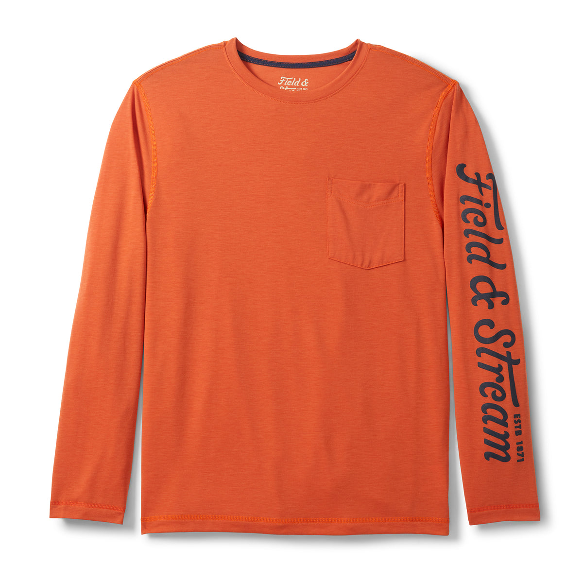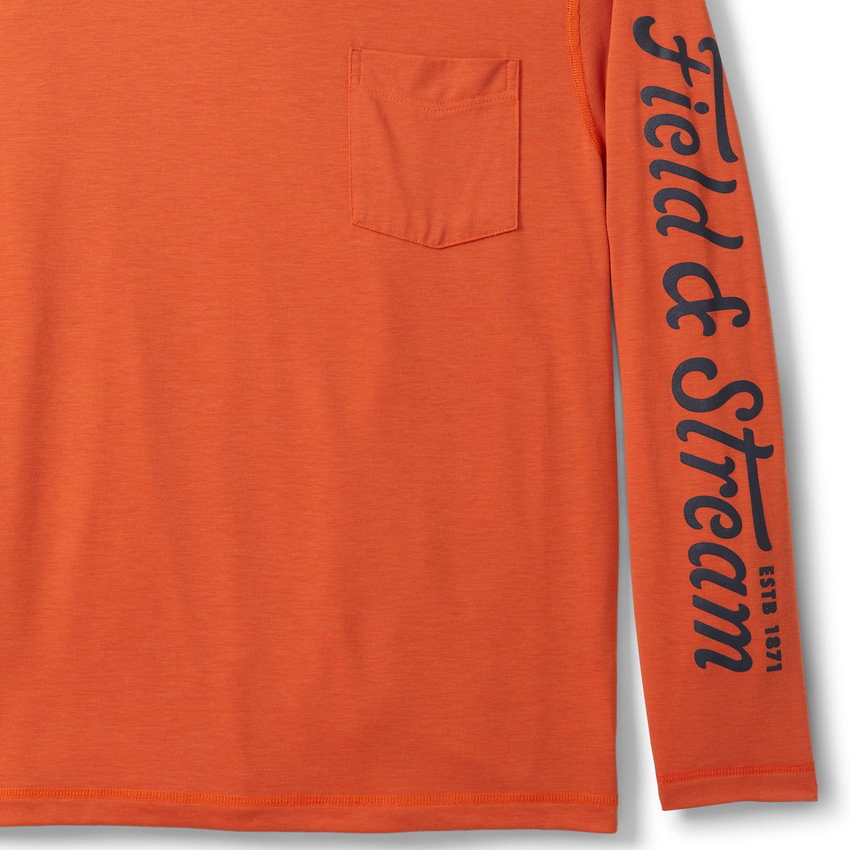 For long-sleeve comfort throughout the day, our Long-sleeve Performance Tee Shirt is always ready for go-time from fishing to hunting and everything in between. Makes a great layer under your hoodie or overshirt but looks great on its own with a left chest pocket and sublimated Field & Stream graphic down the left arm. Temperature regulating materials, reinforced stitching, forward-front seam for added comfort on your shoulders and a custom fit for ease of movement. UPF 50, temperature regulating materials with 4-way stretch, drirelease custom fabrication for added cooling and moisture wicking – keeping you dry, comfortable and protected all day long.