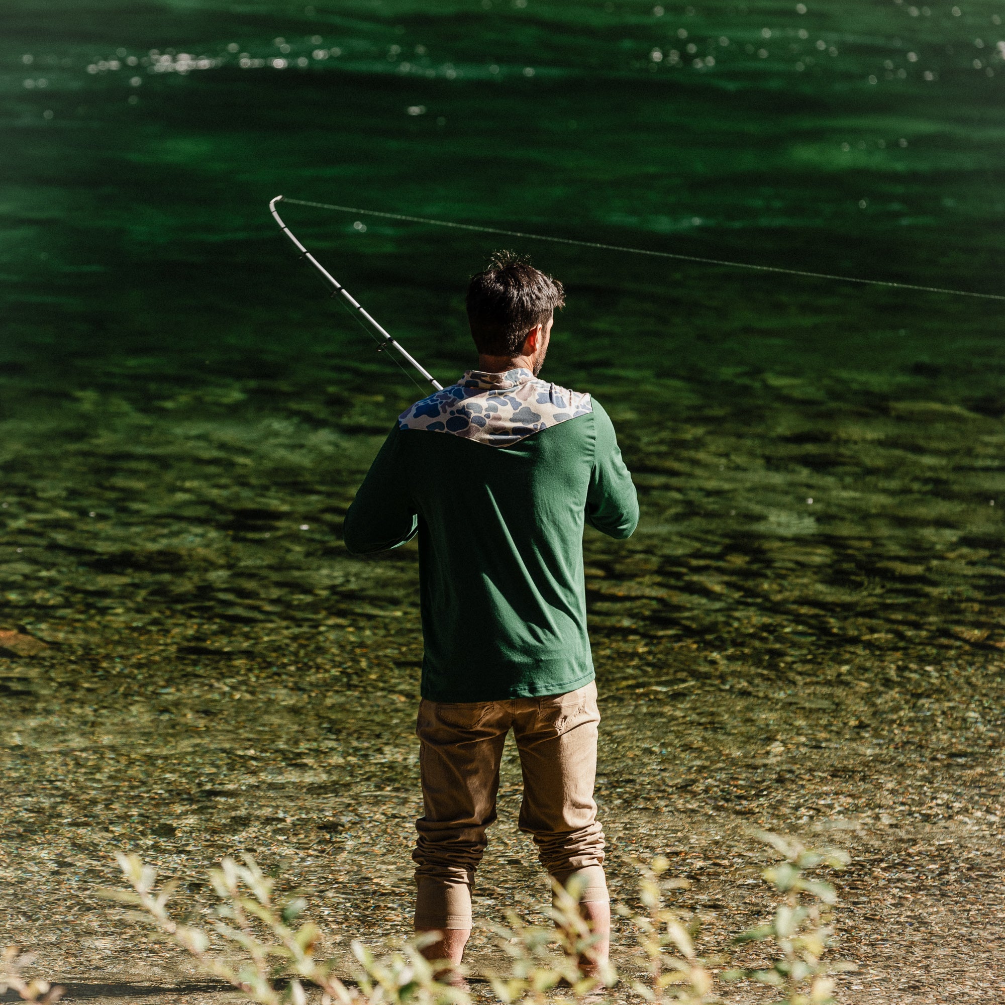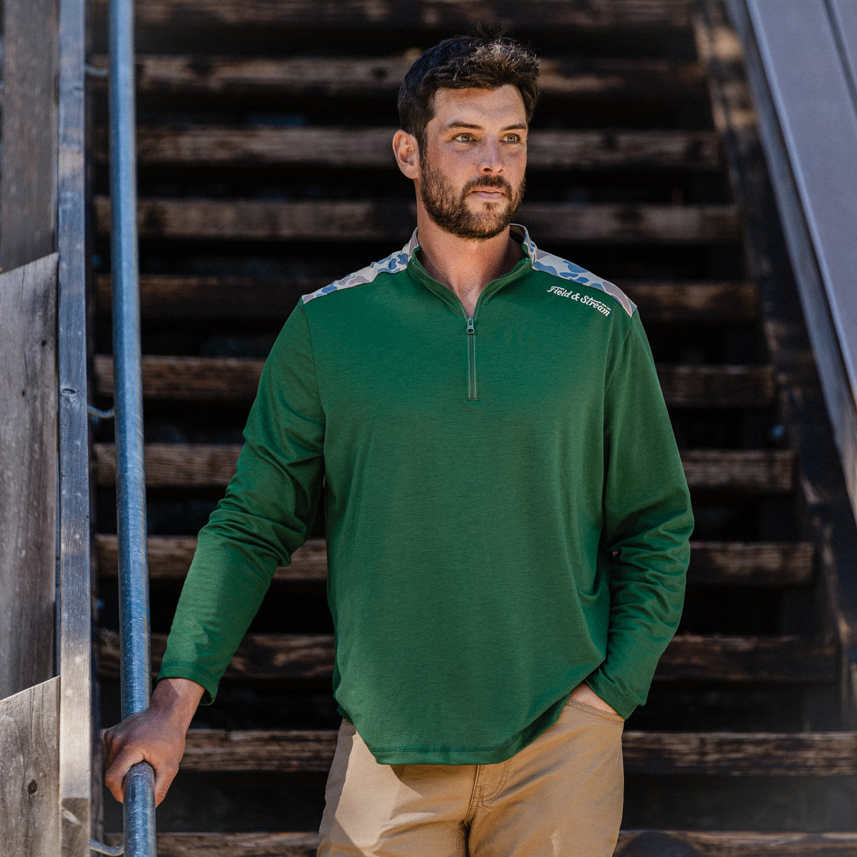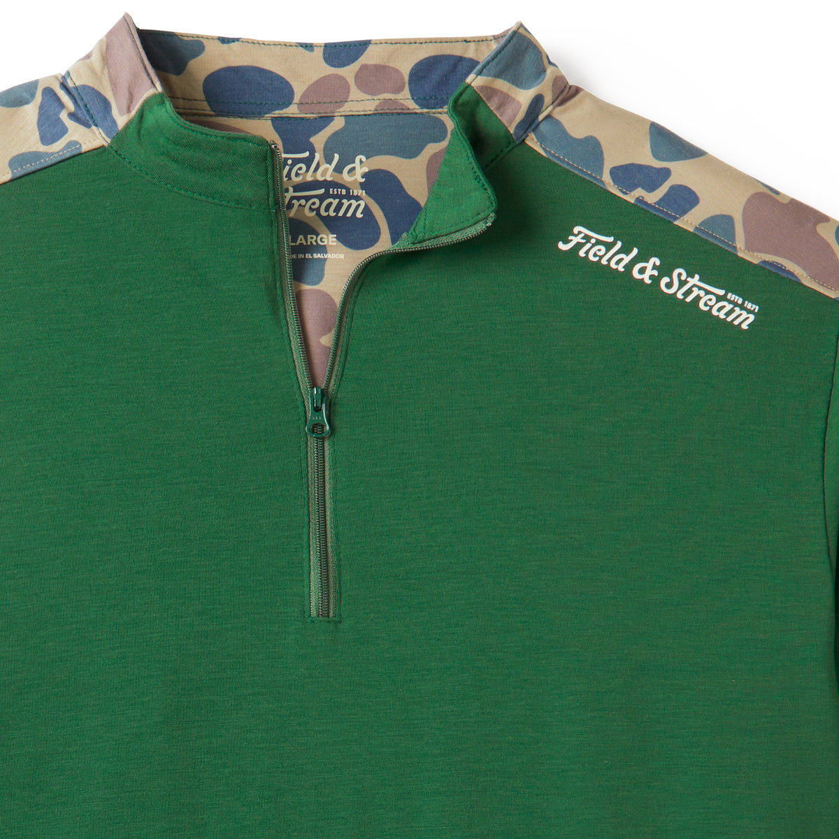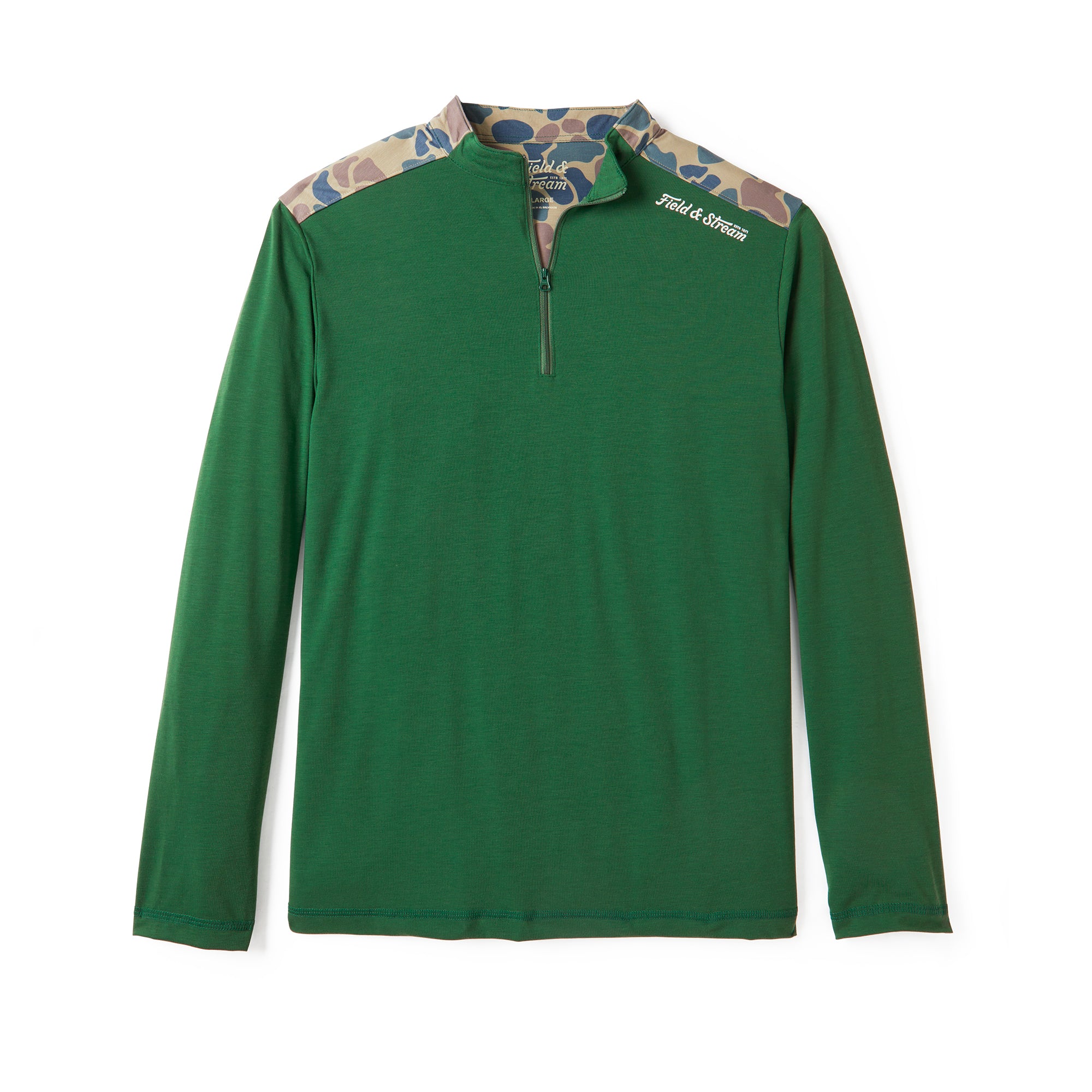 Our long-sleeve drirelease performance 1/4-zip pullover easily transitions from workday to light trails or fishing. Branded on the shoulder with our custom sublimated Field & Stream graphic, zipper front for ease putting it on and opening for added airflow, reinforced stitching, forward-front seam for shoulder comfort and flying V custom yoke for added mobility. It has 4-way stretch, drirelease custom fabrication for added cooling and moisture wicking, UPF 50 and temperature regulating materials.