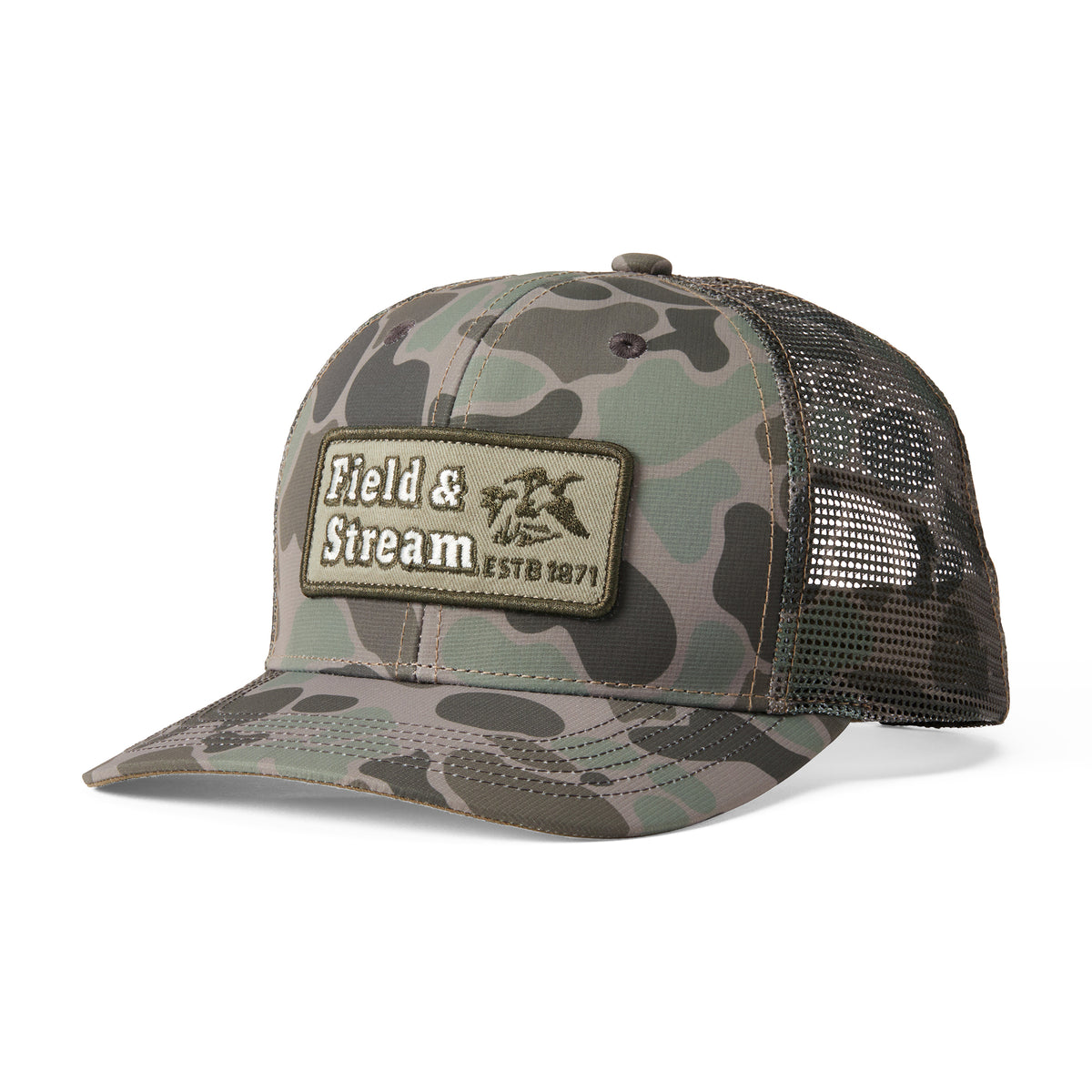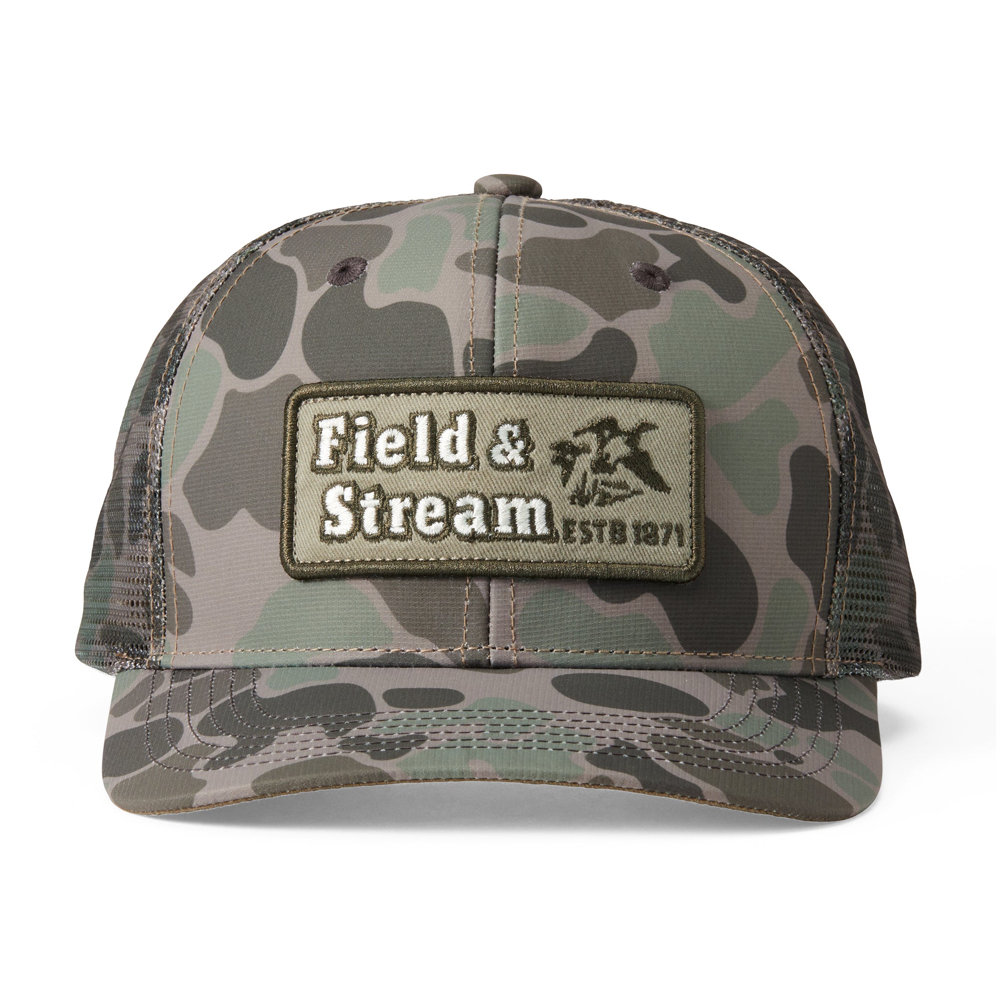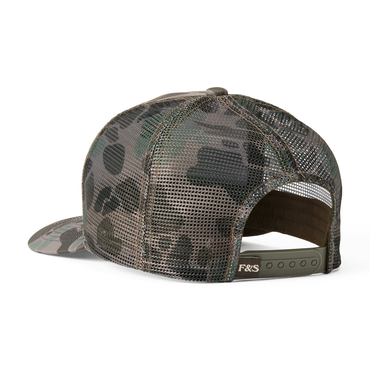 - Printed twill trucker with mesh back for comfort and breathability with a unique graphic label